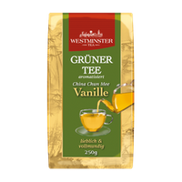 Westminster Herbata Zielona Liściasta z Wanilią to wyjątkowe połączenie dużych, skręconych liści zielonej herbaty z delikatnym aromatem wanilii. To idealny wybór dla miłośników herbaty, którzy cenią sobie bogate doznania smakowe.