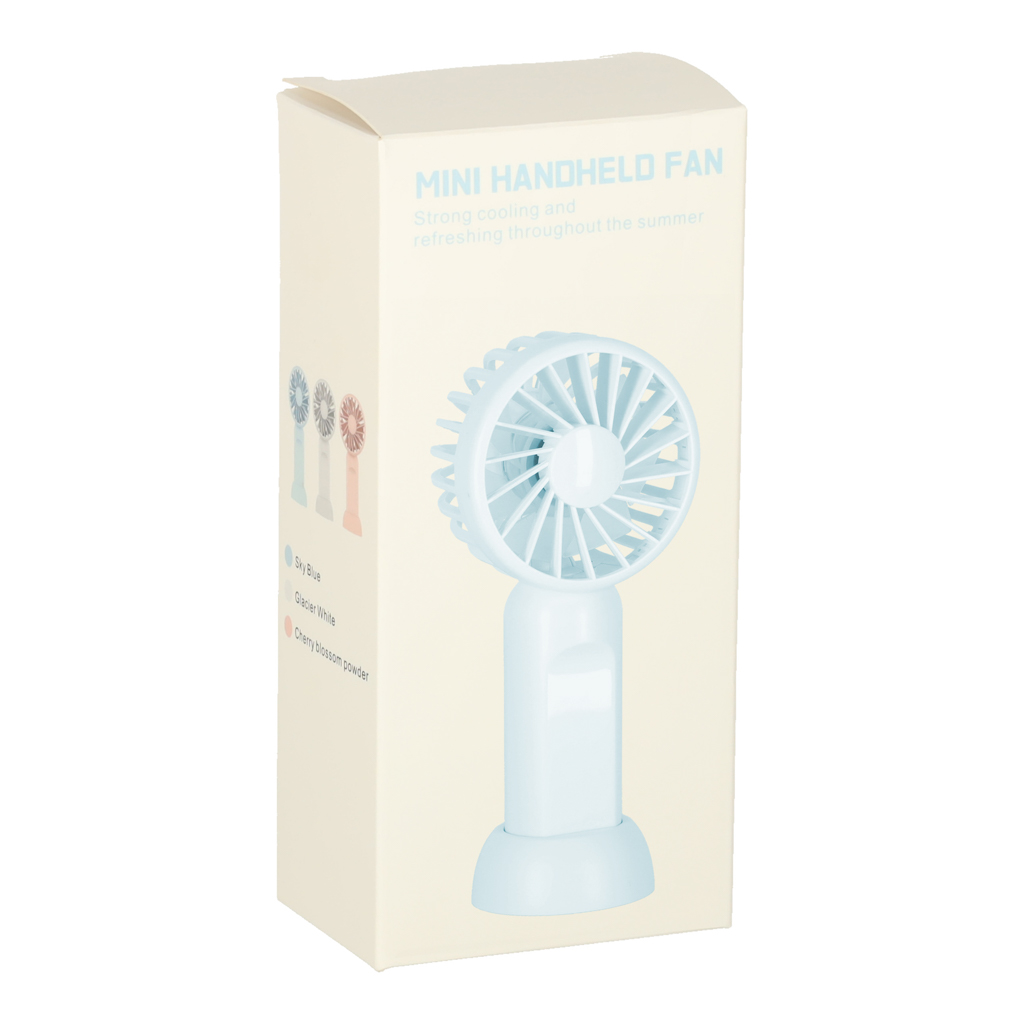 Wiatraczek działa na akumulatorze i po pełnym naładowaniu może pracować od 2 do 6 godzin. Jest to doskonały wybór do biura lub podczas wakacji, zapewniając ochłodzenie, gdy najbardziej tego potrzebujesz.
