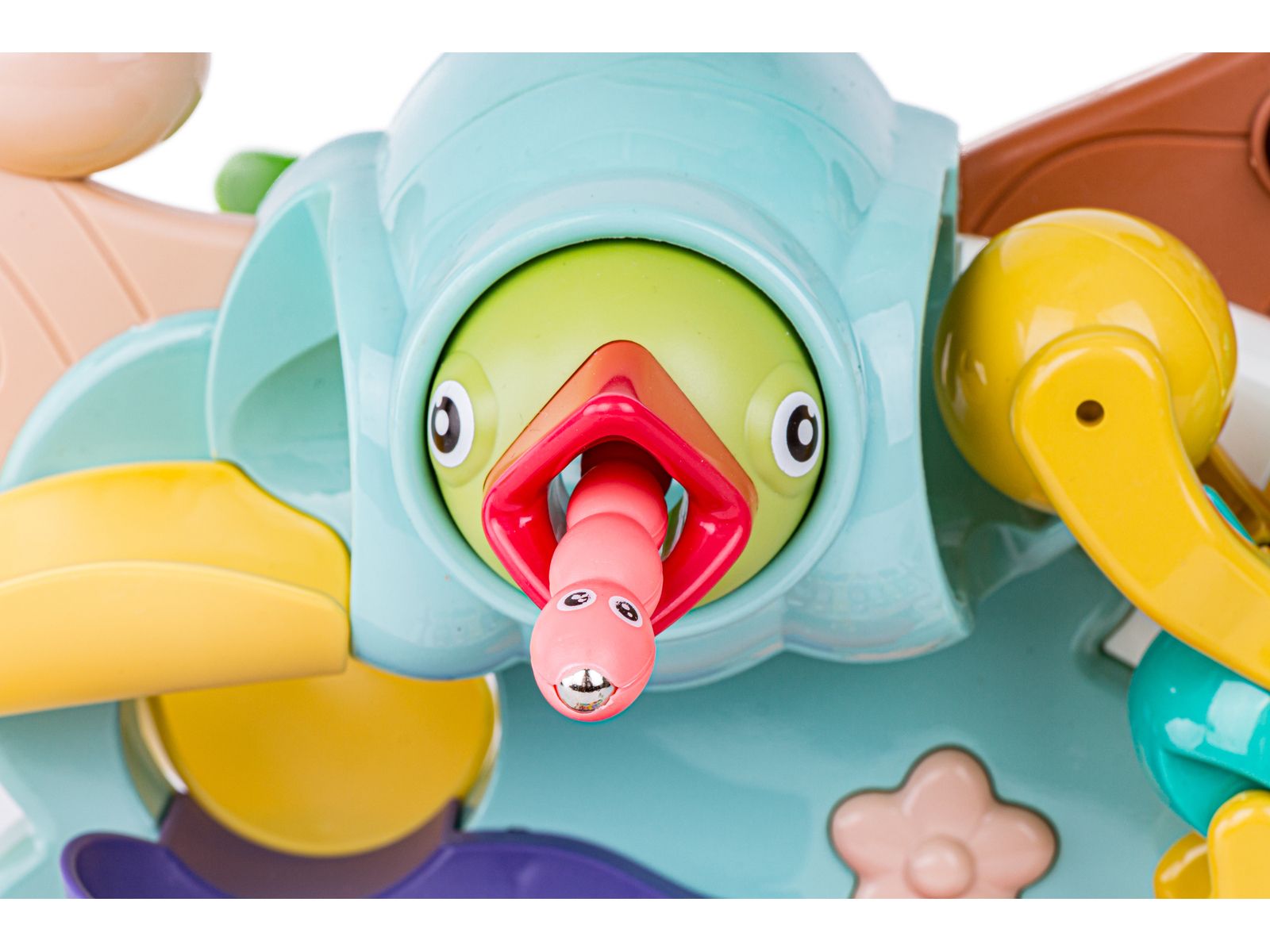 To, co zachwyci każde dziecko i zapewni mu długie godziny zajmującej, mądrej zabawy, to mnóstwo atrakcji w jednej zabawce. Nasza wyposażona została w przeróżne elementy edukacyjne, w tym dźwiękowe.