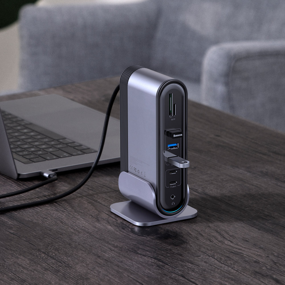 Odkryj nowy wymiar pracy i rozrywki z HUB-em Baseus. Dzięki 16 różnorodnym wejściom, w tym czytnikowi kart SD i Micro SD, portom USB oraz HDMI, możesz podłączyć nawet 4 dodatkowe monitory. To idealne rozwiązanie dla osób potrzebujących zwiększonej liczby portów oraz wysokiej jakości obrazu.