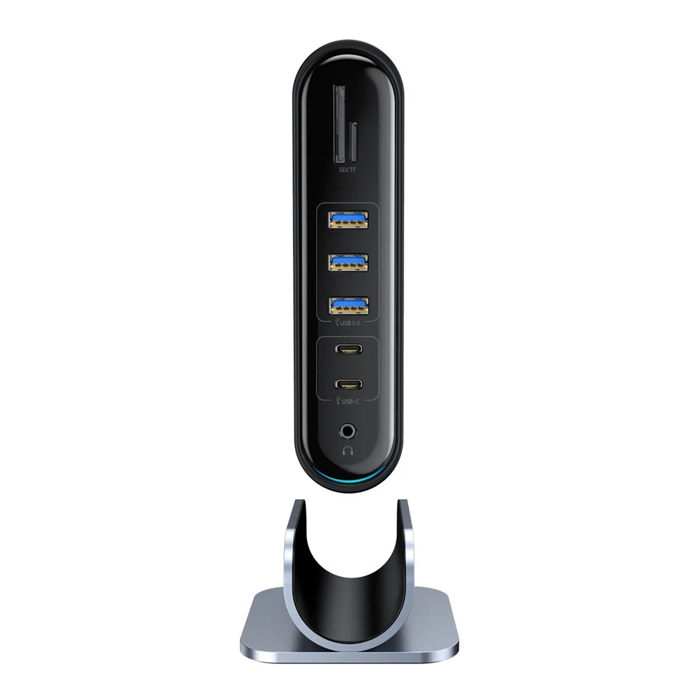 Ten zaawansowany HUB łączy w sobie 16 różnych wejść, w tym czytnik kart SD i Micro SD, porty USB oraz HDMI, co umożliwia podłączenie nawet 4 dodatkowych monitorów. To idealne rozwiązanie dla osób potrzebujących zwiększonej liczby portów oraz wysokiej jakości obrazu.