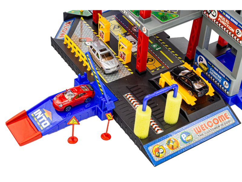 Zabawa parkingiem jest tym ciekawsza, im bardziej jest on rozbudowany i im więcej gadżetów posiada. A ten wielopoziomowy parking posiada ich wystarczająco dużo, by każda minuta zabawy była najwspanialszym momentem dnia: