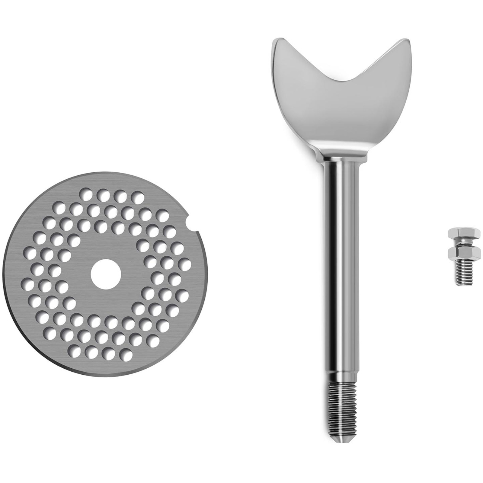 Urządzenie wyposażone jest w obroty wsteczne, które pomagają w przypadku zatorów. W zestawie znajdują się dwa sitka o średnicach 4,5 mm i 8 mm oraz popychacz, co pozwala na elastyczne dostosowanie do różnych potrzeb.