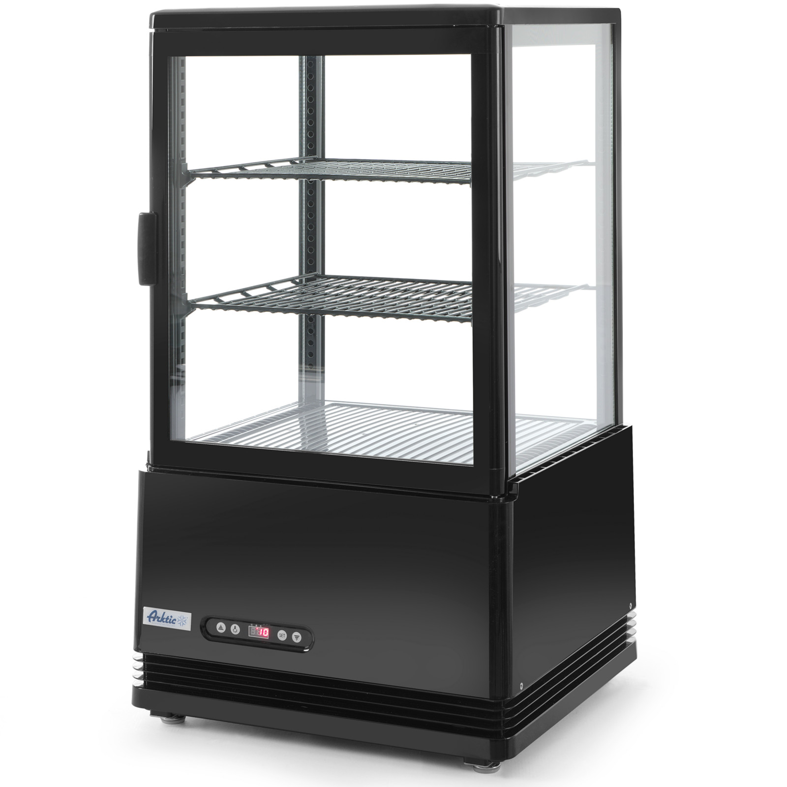 Elegancka witryna chłodnicza w czarnym kolorze to doskonałe rozwiązanie do przechowywania i eksponowania produktów spożywczych. Dzięki podwójnie przeszklonym drzwiom, zapewnia świetną widoczność zawartości. Wbudowany kanał powietrzny zapobiega kondensacji pary wodnej, co pozwala utrzymać optymalne warunki wewnętrzne.