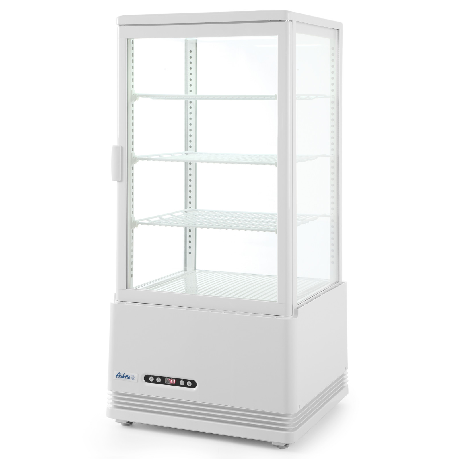Witryna posiada przestawne stalowe półki powlekane PVC, co umożliwia elastyczne dostosowanie przestrzeni. Cyfrowy wyświetlacz oraz elektroniczny termostat ułatwiają monitorowanie i regulację temperatury. System chłodzenia wymuszonego z automatycznym rozmrażaniem zapewnia optymalne warunki dla Twoich produktów.