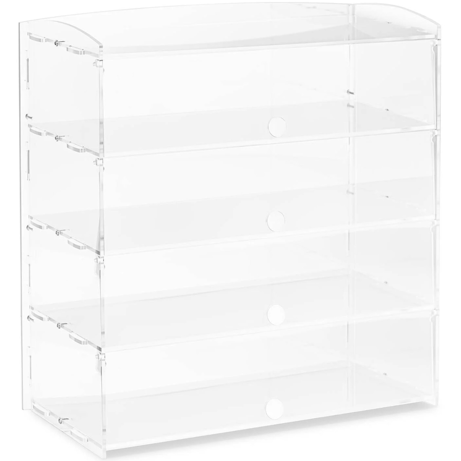 Wykonana z odpornego na uderzenia akrylu, witryna jest zarówno elegancka, jak i trwała. Gładkie powierzchnie o grubości 4,8 mm są łatwe do czyszczenia, co ułatwia codzienną obsługę. Witryna jest również wszechstronna – sprawdzi się nie tylko do wypieków, ale także do przechowywania zabawek czy dekoracji.