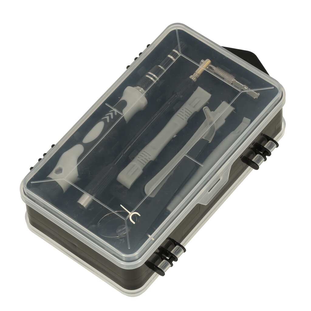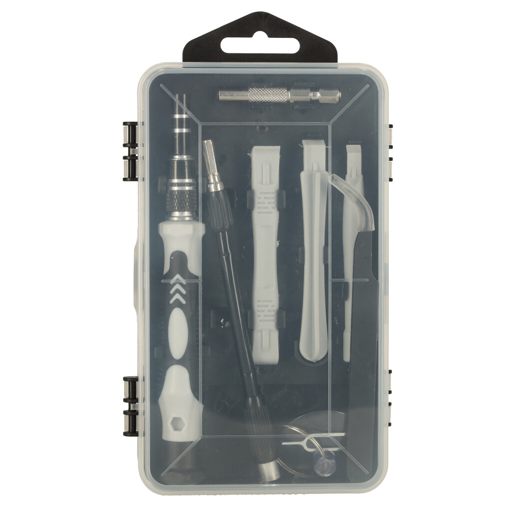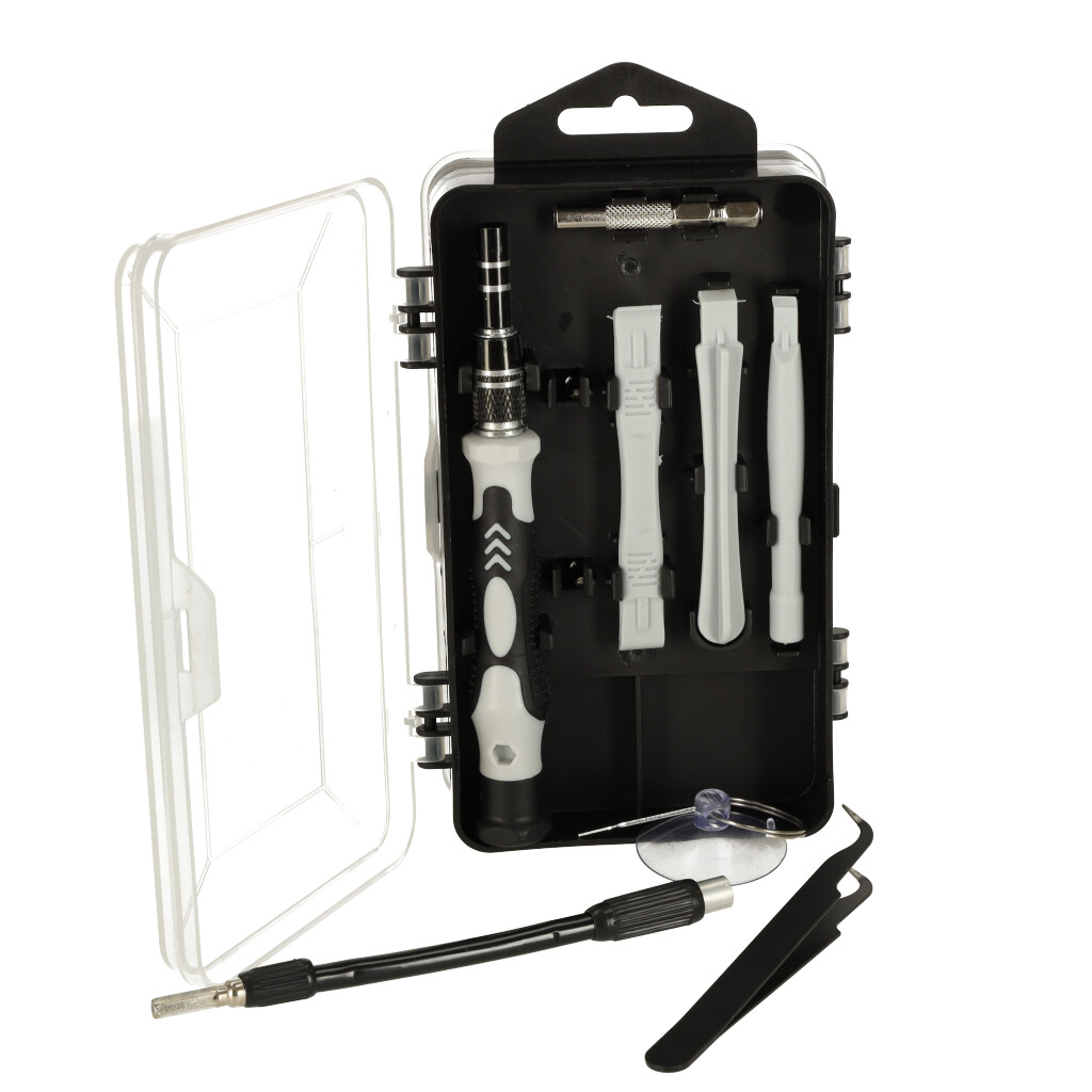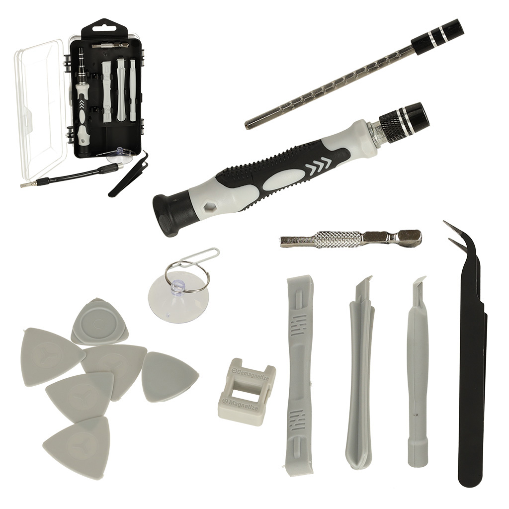 W skład zestawu wchodzą również przydatne akcesoria, takie jak przedłużka do wkrętaka, pęseta, przyssawka do demontażu szkła oraz kluczyk do wysuwania kart SIM. To wszystko sprawia, że naprawy stają się prostsze i bardziej komfortowe.
