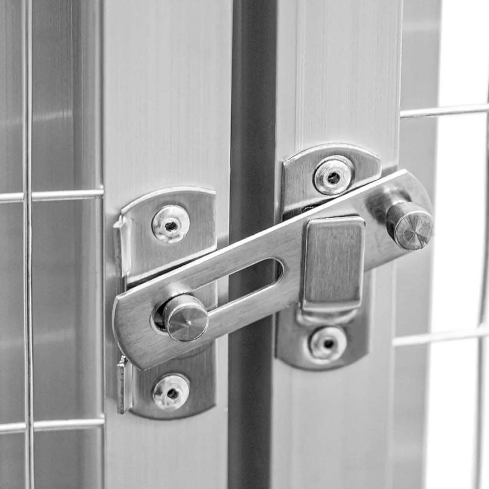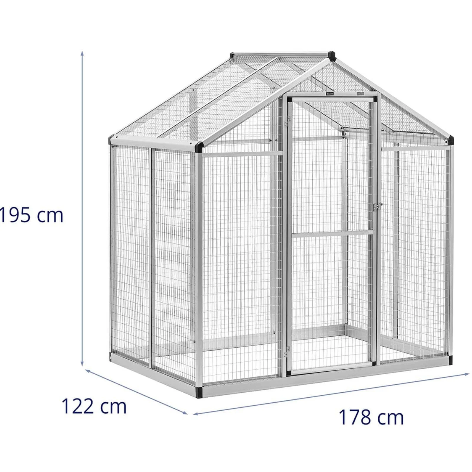 Ta solidna klatka została zaprojektowana z myślą o bezpieczeństwie Twoich zwierząt. Wykonana z aluminium i żelaza, gwarantuje wyjątkową trwałość i stabilność, dzięki czemu jest odporna na niekorzystne warunki atmosferyczne.