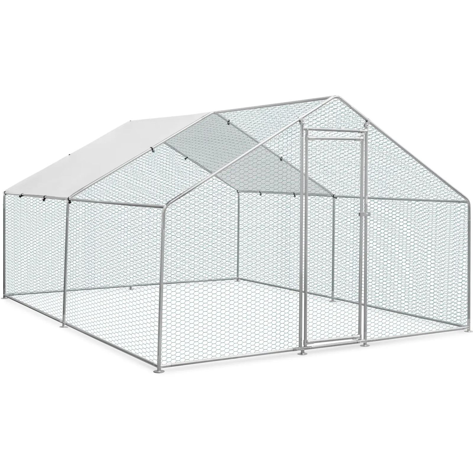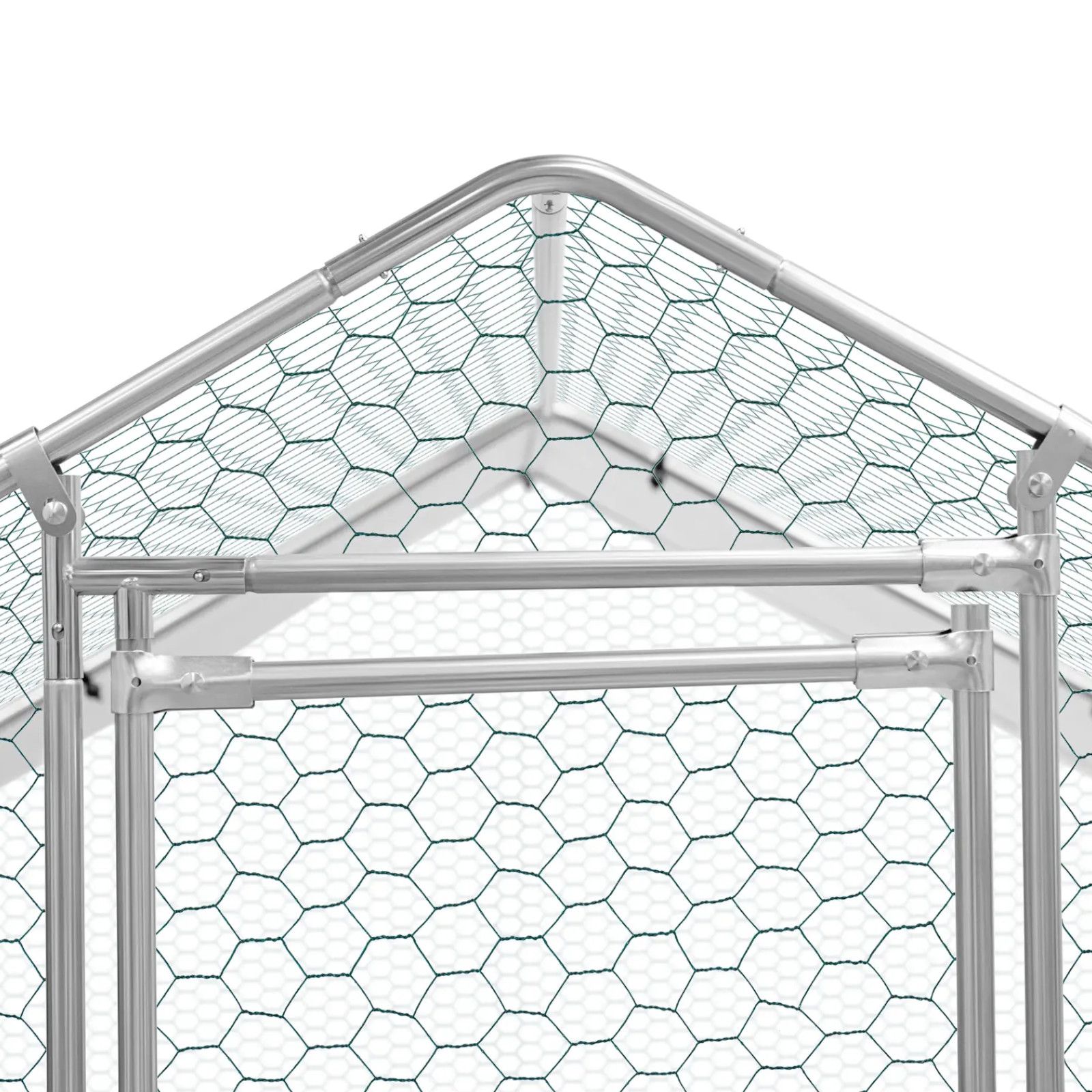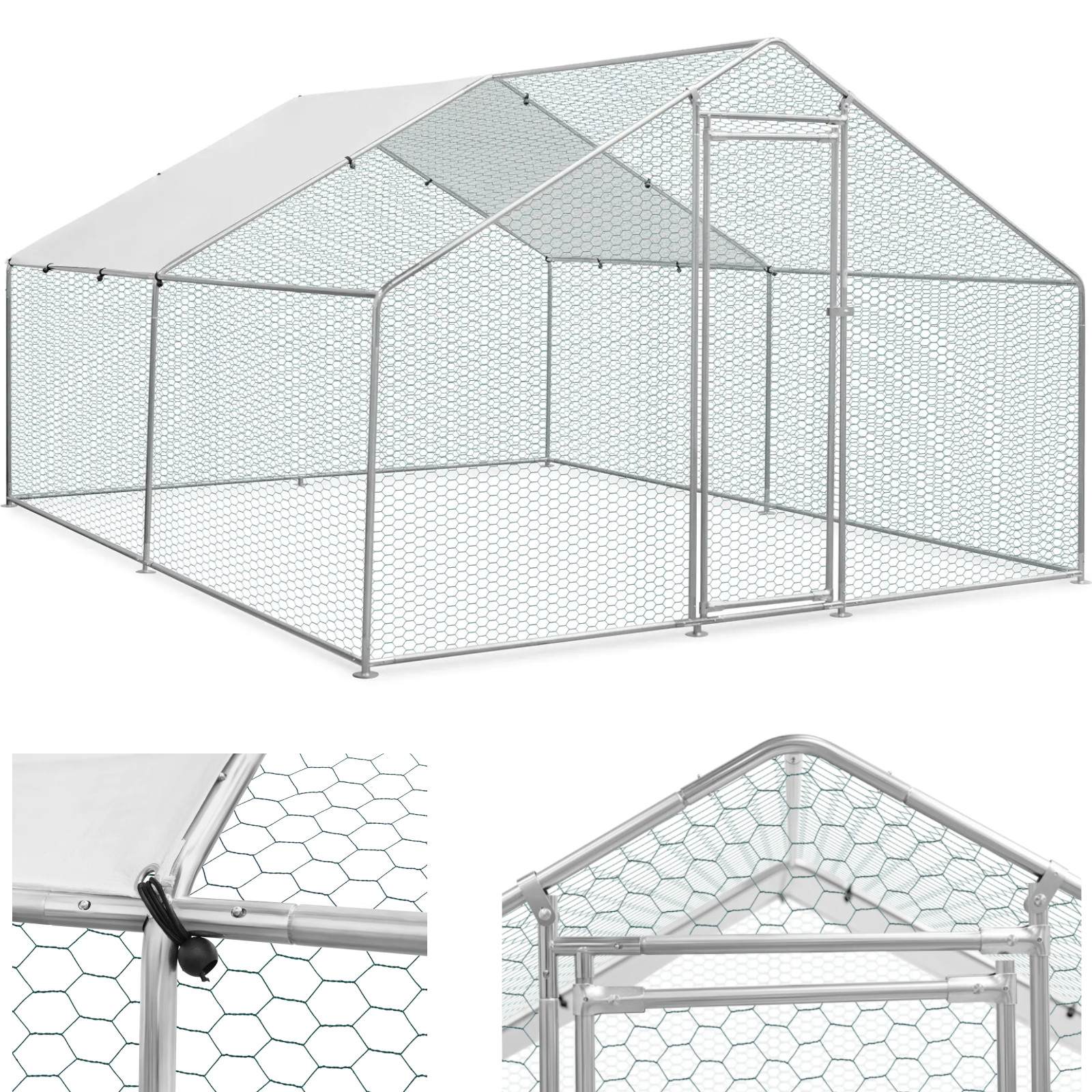Klatkę łatwo złożysz zgodnie z instrukcją. Wzmocnione słupki ziemne gwarantują stabilność, a wszystkie materiały są odporne na warunki atmosferyczne, co czyni ją idealną do użytku zewnętrznego. Stalowe słupy są ocynkowane, a siatka pokryta PVC, co zwiększa trwałość. Plandeka PE chroni przed deszczem, a jej montaż na dachu jest prosty i elastyczny.