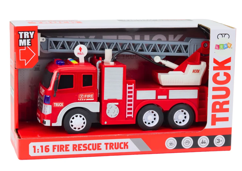 Napęd frykcyjny i gumowe koła sprawiają, że po pchnięciu wóz rusza z impetem do przodu, gotowy do szybkiej jazdy na miejsce zdarzenia. Otwierane drzwi pozwalają na łatwy dostęp do wnętrza, gdzie dzieci mogą umieścić swoich małych strażaków i razem wyruszyć na kolejną misję ratunkową. Przestronne wnętrze wozu umożliwia przechowywanie drobnych akcesoriów strażackich, takich jak kaski, gaśnice czy liny, co dodaje realizmu i funkcjonalności.
