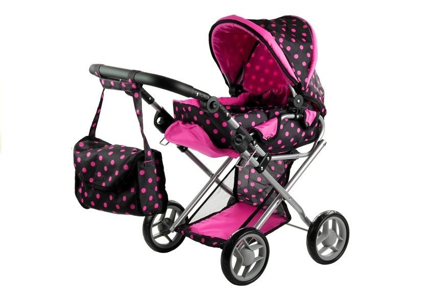 Głęboki wózek dla lalek Alice — czarny w różowe groszki