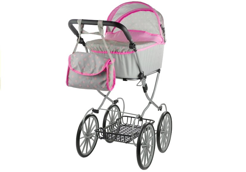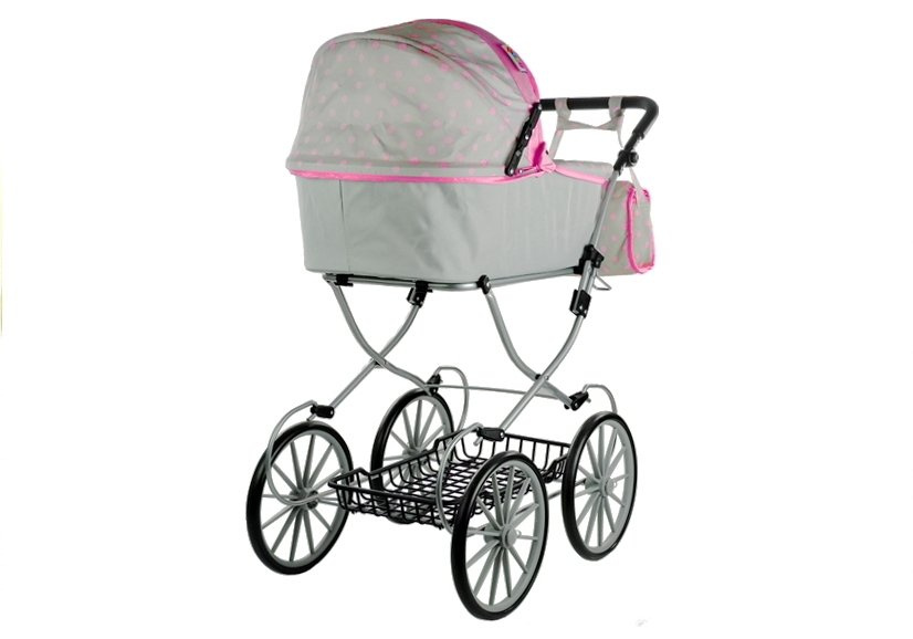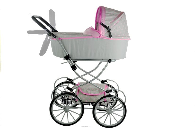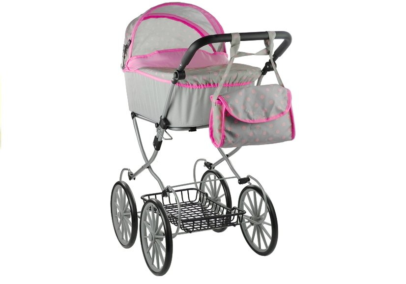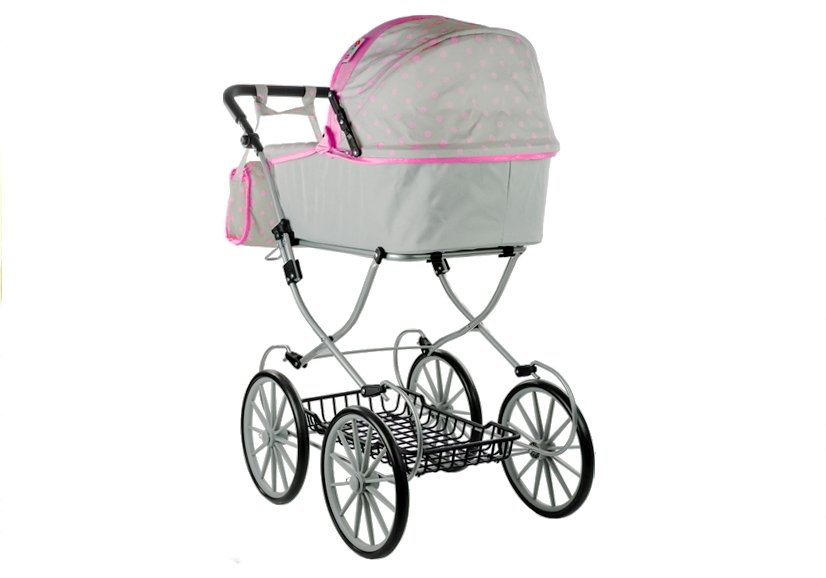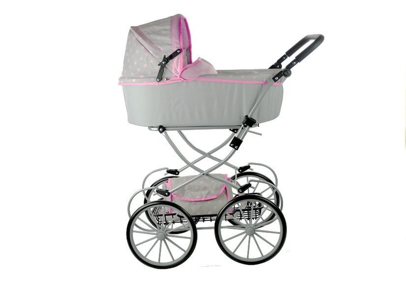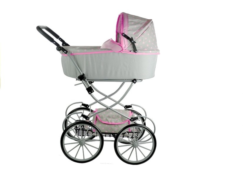 Głęboki wózek retro dla lalek Alice — Szary w różowe groszki
