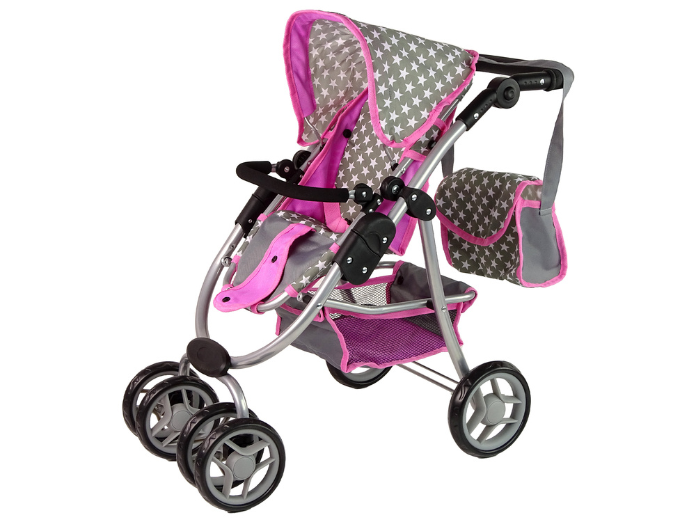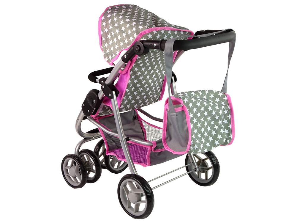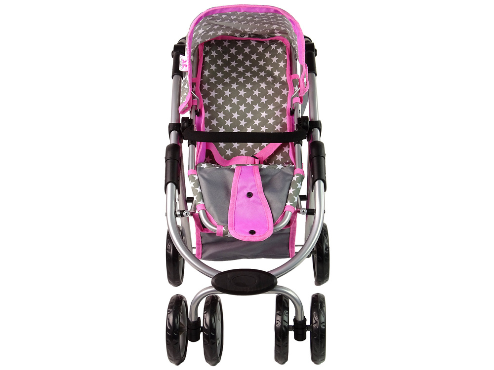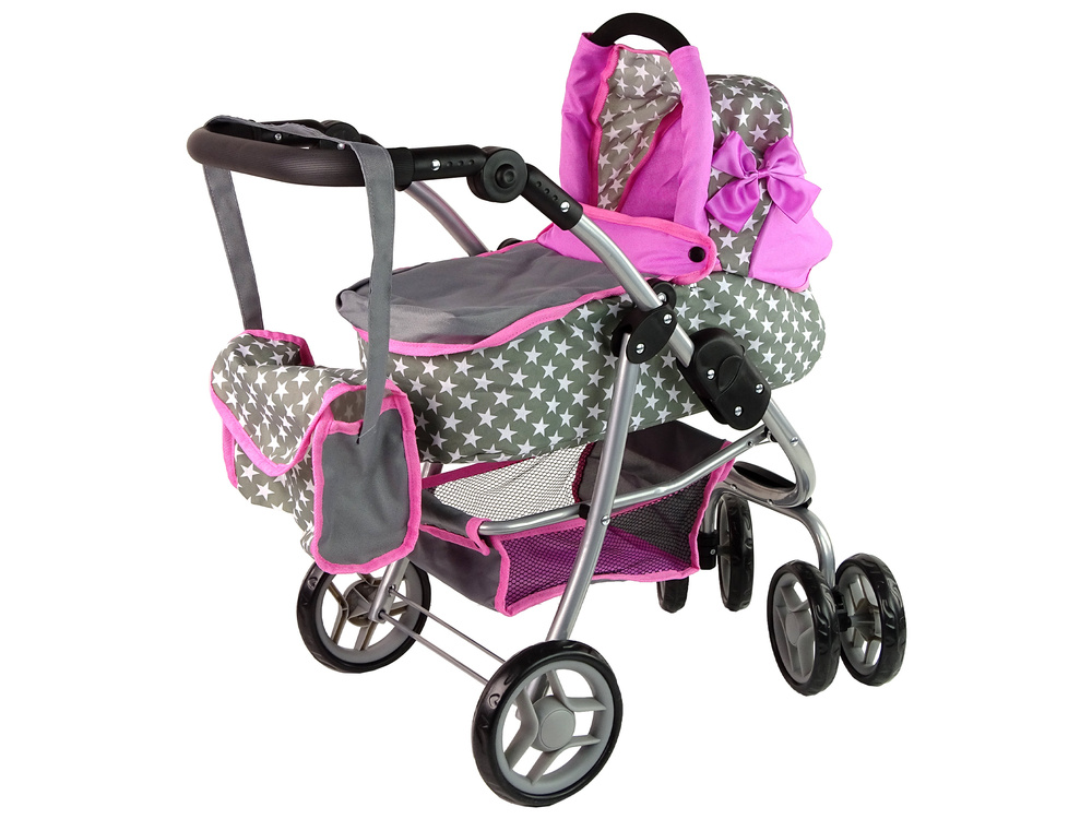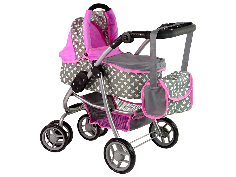 Wózek Dla Lalek Spacerówka 2 w 1 Gondola Torba Różowy Gwiazdki