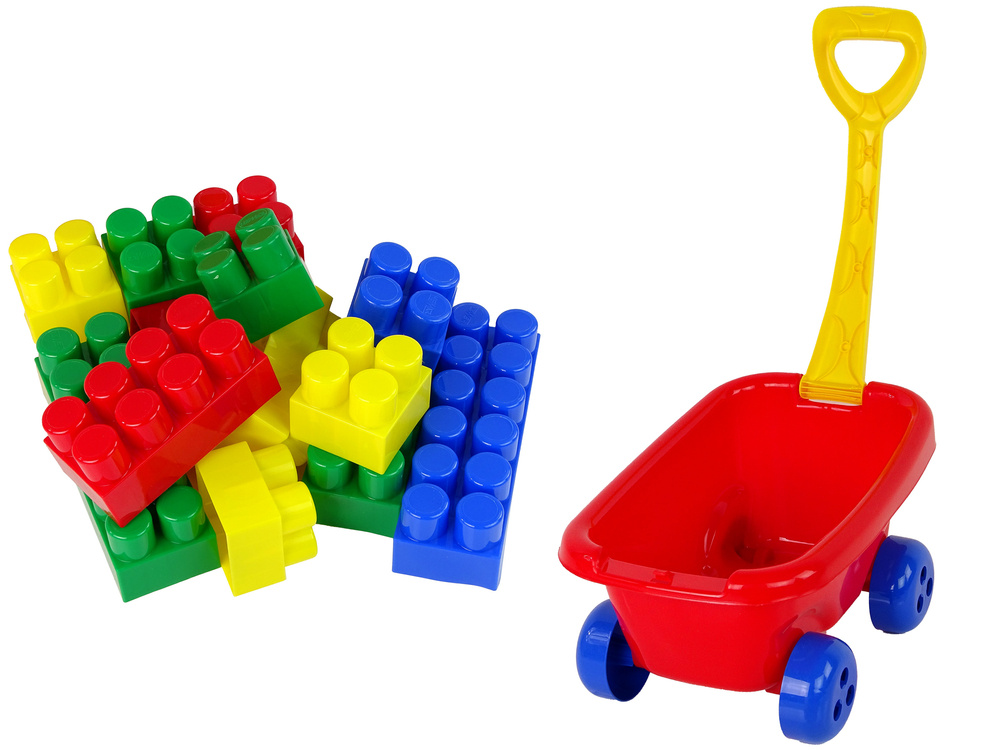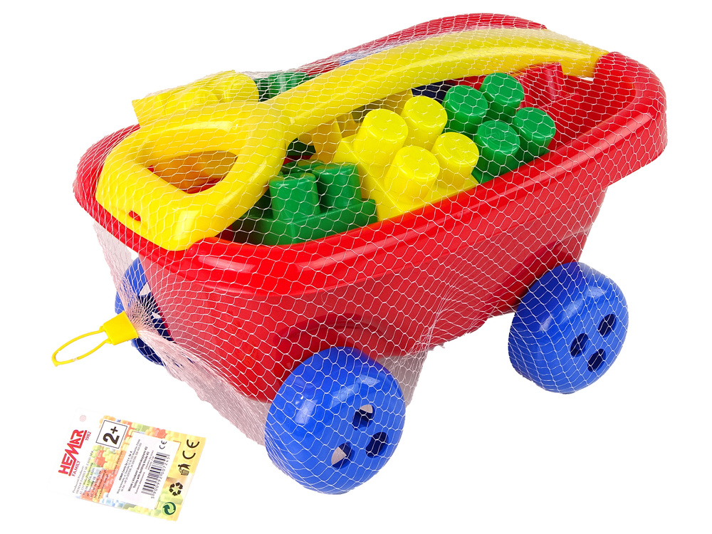 Wózek do ciągnięcia z kolorowymi klockami K3 Czerwony