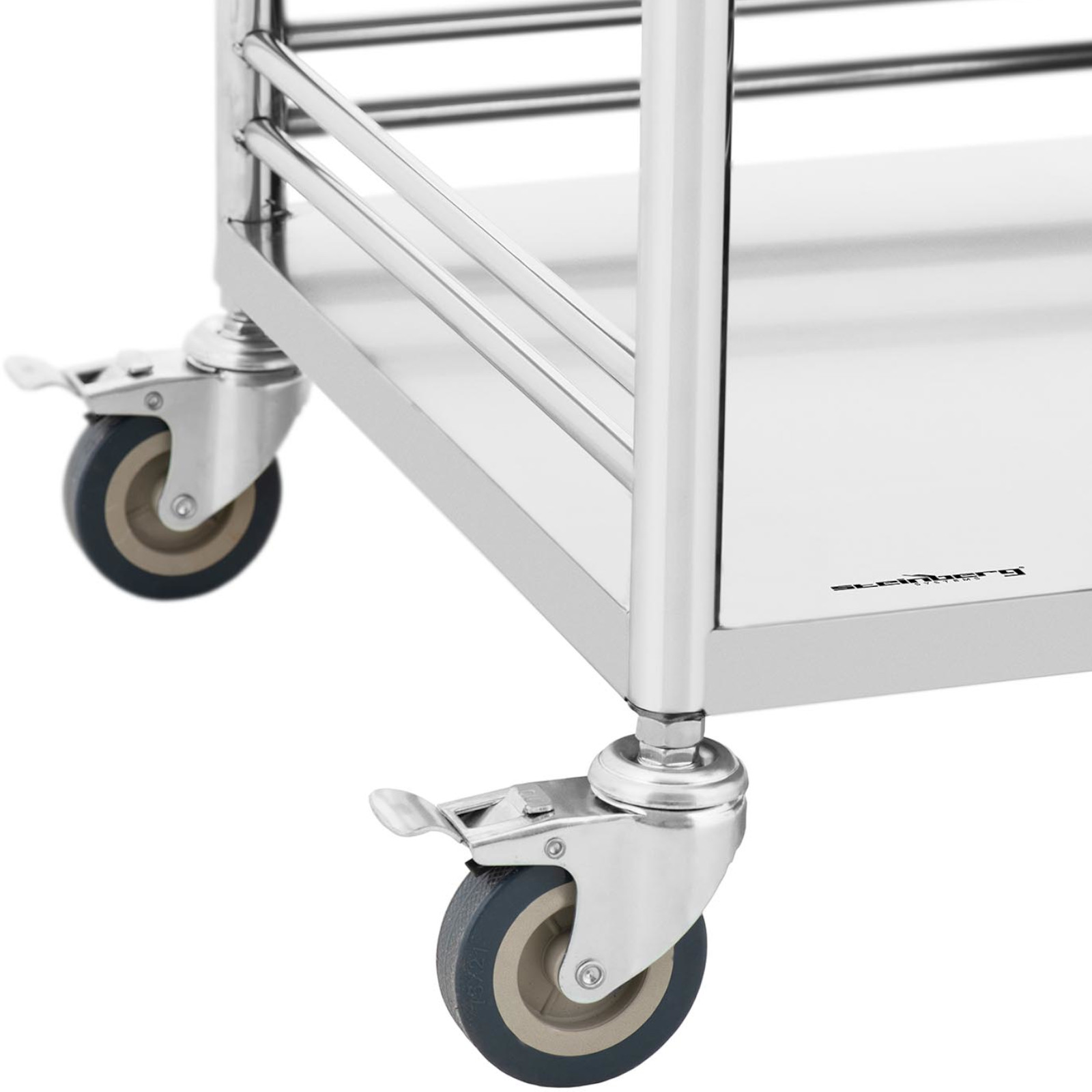 Wózek na pranie marki Steinberg Systems to praktyczne rozwiązanie do szpitali, hoteli, laboratoriów oraz placówek opiekuńczych. Dzięki trzem półkom o wymiarach 34,5 x 42 x 25 cm, umożliwia wygodne przechowywanie akcesoriów o maksymalnej wadze do 30 kg.
