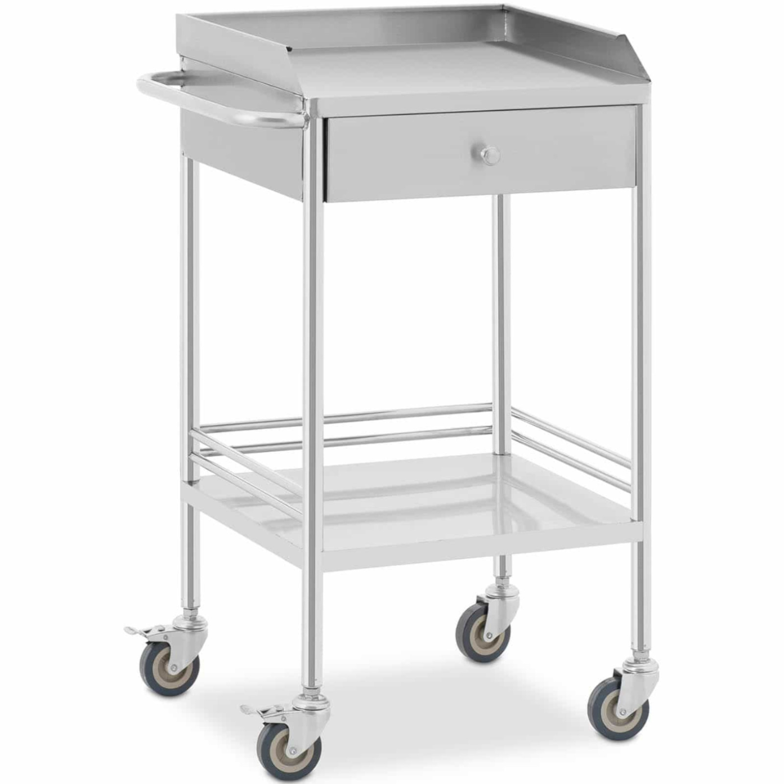 Wózek laboratoryjny marki Steinberg Systems to doskonałe rozwiązanie do salonów kosmetycznych, tatuażu, gabinetów zabiegowych oraz SPA. Dzięki dwóm półkom oraz szufladzie, zyskujesz miejsce na przechowywanie niezbędnych akcesoriów. Ramka chroni przedmioty przed przypadkowym ześlizgnięciem, co zwiększa bezpieczeństwo użytkowania.