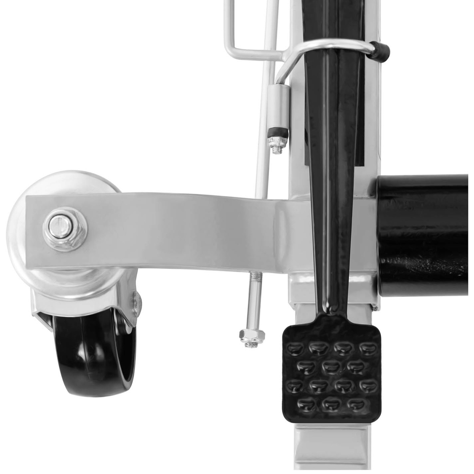 Oferuje regulację wysokości w zakresie od 335 mm do 595 mm, co pozwala na łatwe dostosowanie do różnych potrzeb. Jego maksymalne obciążenie wynosi 567 kg, co umożliwia sprawne podnoszenie pojazdów, co jest szczególnie przydatne podczas wymiany opon czy demontażu kół.