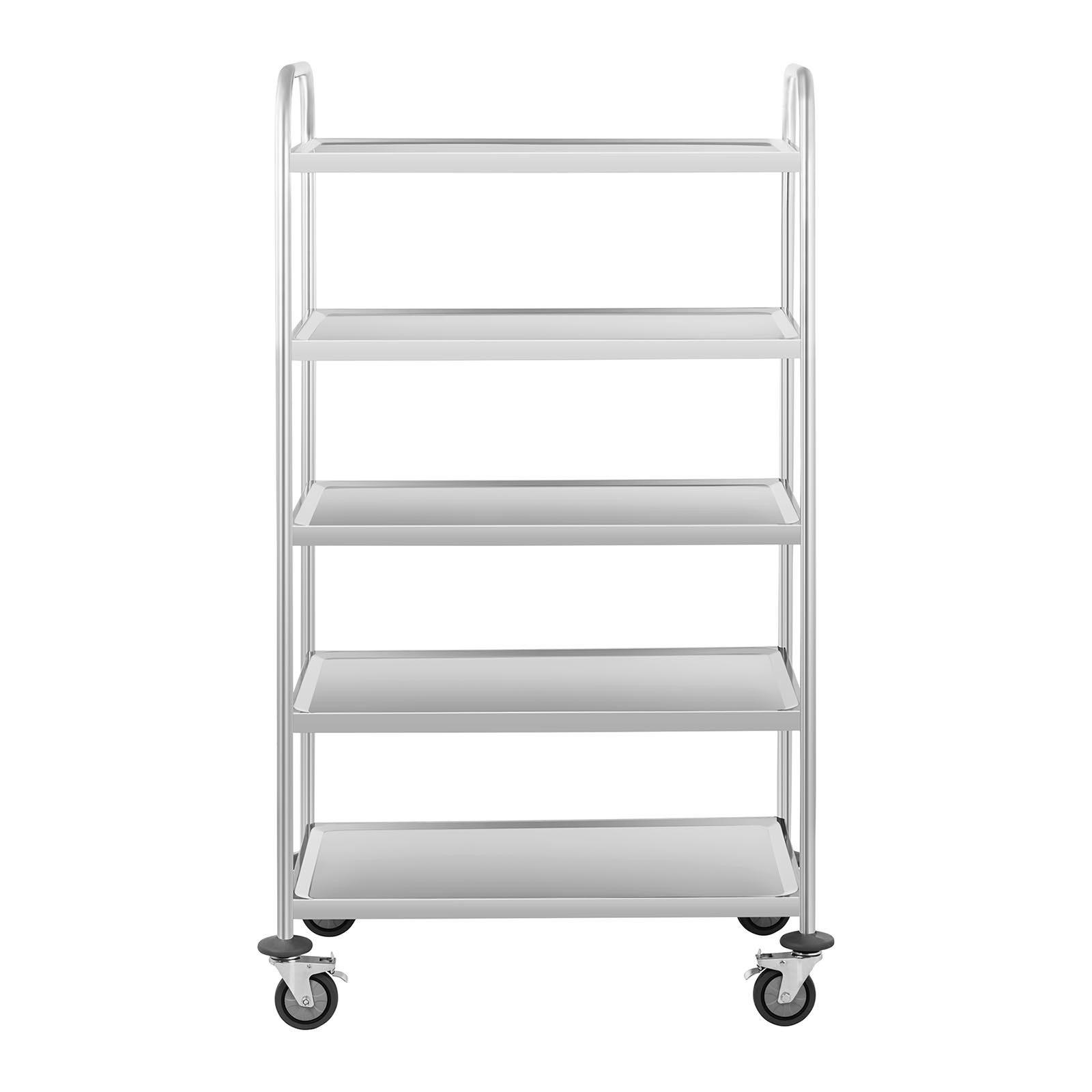 Wózek kelnerski od Royal Catering to doskonałe rozwiązanie do intensywnego użytku w restauracjach, hotelach oraz ośrodkach wypoczynkowych. Dzięki pięciu półkom, każda o nośności 50 kg, umożliwia efektywne transportowanie potraw, napojów oraz naczyń.