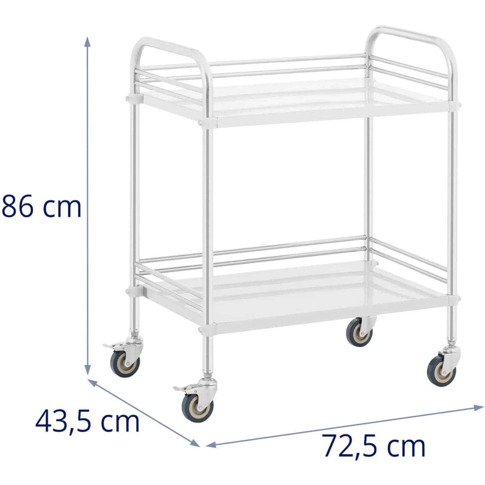 Ramka w kształcie litery U zapobiega spadaniu przedmiotów, a otwarta strona zapewnia łatwy dostęp do wnętrza. Wózek ma cztery kółka z plastiku (ABS+PVC), co czyni go delikatnym dla podłóg. Dwa z kółek są wyposażone w hamulce postojowe, co zwiększa stabilność podczas użytkowania.