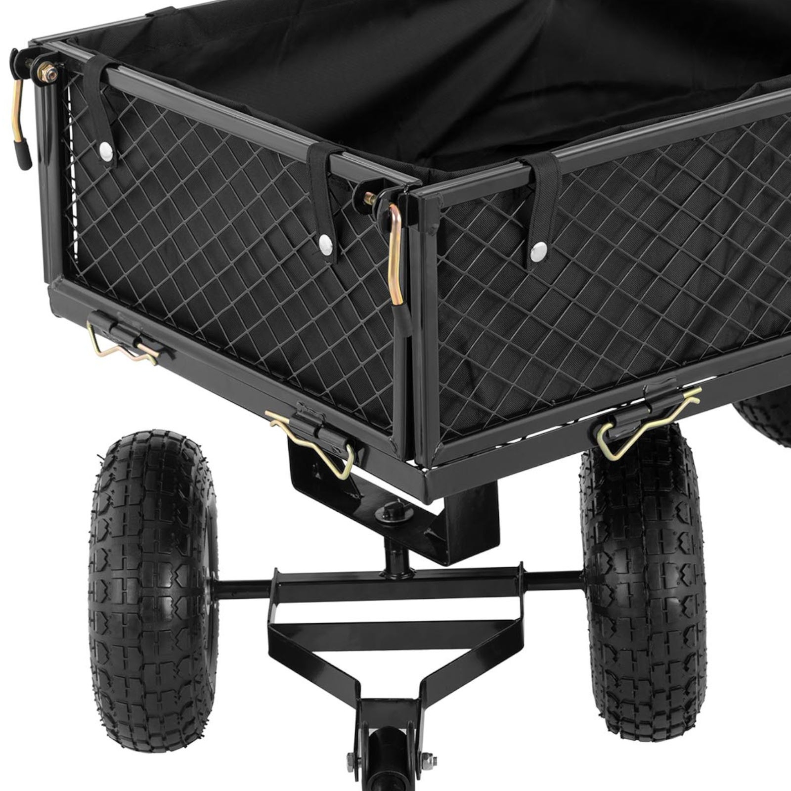 Plandeka wykonana z odpornego na wilgoć PVC jest łatwa do czyszczenia, co ułatwia utrzymanie wózka w dobrym stanie. Możliwość rozłożenia boków stalowej ramy tworzy praktyczną platformę, dostosowując powierzchnię do indywidualnych potrzeb użytkownika.