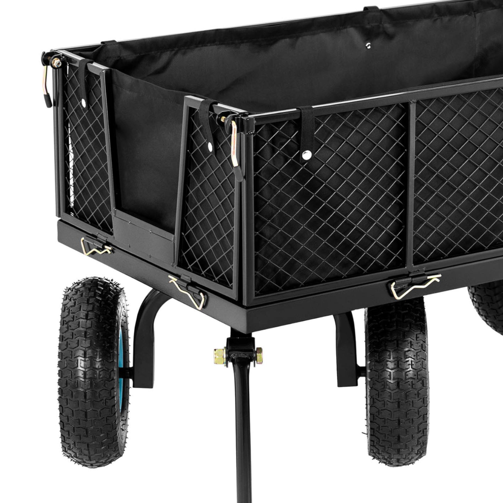 Wózek ogrodowy marki hillvert to doskonałe rozwiązanie do transportu różnych materiałów w ogrodzie, sadzie czy na podwórku. Dzięki dużej nośności wynoszącej 550 kg, bez trudu przewieziesz ziemię, nawóz lub zbiory. Plandeka wykonana z odpornego na wilgoć PVC ułatwia czyszczenie, co sprawia, że wózek jest praktycznym narzędziem w każdym gospodarstwie.