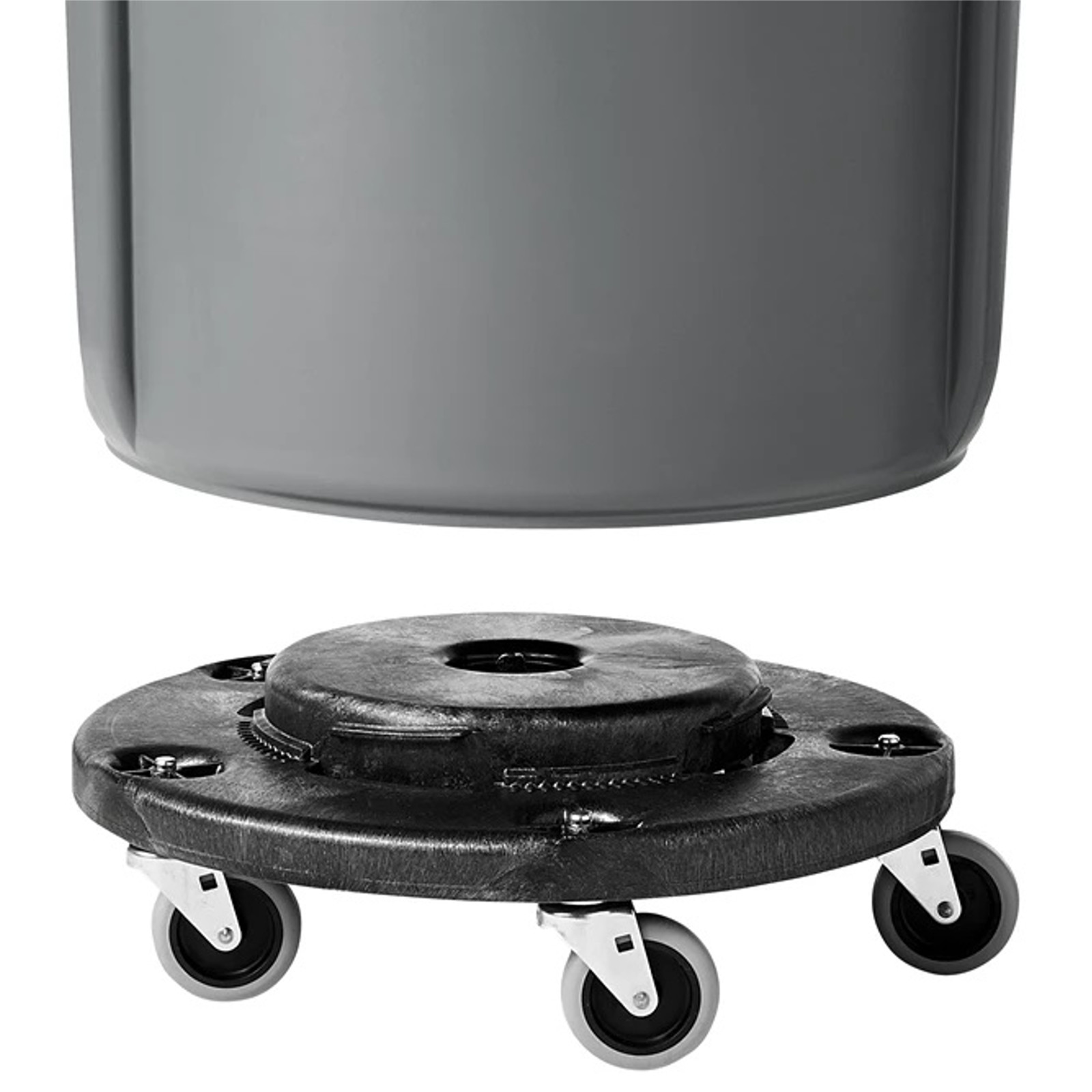 Wysokiej jakości podstawa jezdna z kółkami do kubłów BRUTE Round marki Rubbermaid zapewnia łatwe przemieszczanie pojemników. Dzięki cichym i niebrudzącym kółkom, wózek jest idealny do zastosowania w gastronomii, centrach handlowych, biurach oraz w przemyśle, gdzie wymagane są posadzki wysokiej jakości.