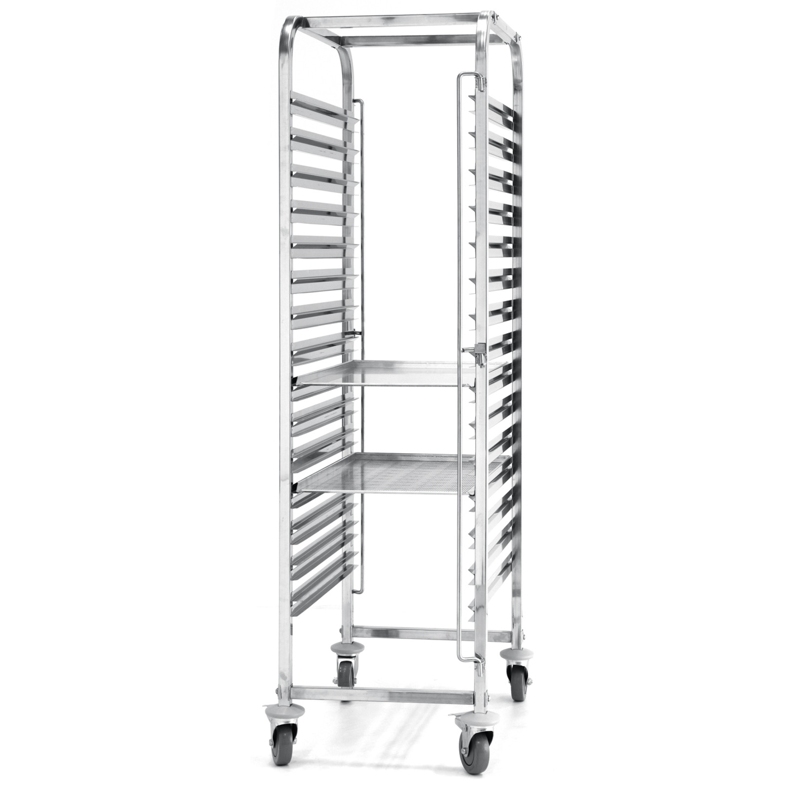 Wózek gastronomiczny to doskonałe rozwiązanie do transportu 15 blach o wymiarach 600x400 mm. Idealnie sprawdzi się w różnych placówkach gastronomicznych, a także w szpitalach i szkołach.