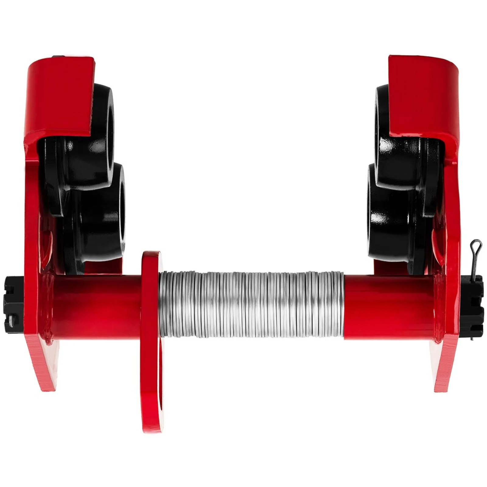 Wózek charakteryzuje się regulacją szerokości w zakresie od 110 do 220 mm, co umożliwia łatwy montaż na różnych dźwigarach. Wyposażony w cztery stalowe kółka z podwójnym systemem, umożliwia płynne przemieszczanie po prostych i stożkowych prowadnicach. Jego wymiary wynoszą 31 x 26 x 23 cm, a waga to 11,45 kg, co sprawia, że jest łatwy w obsłudze.