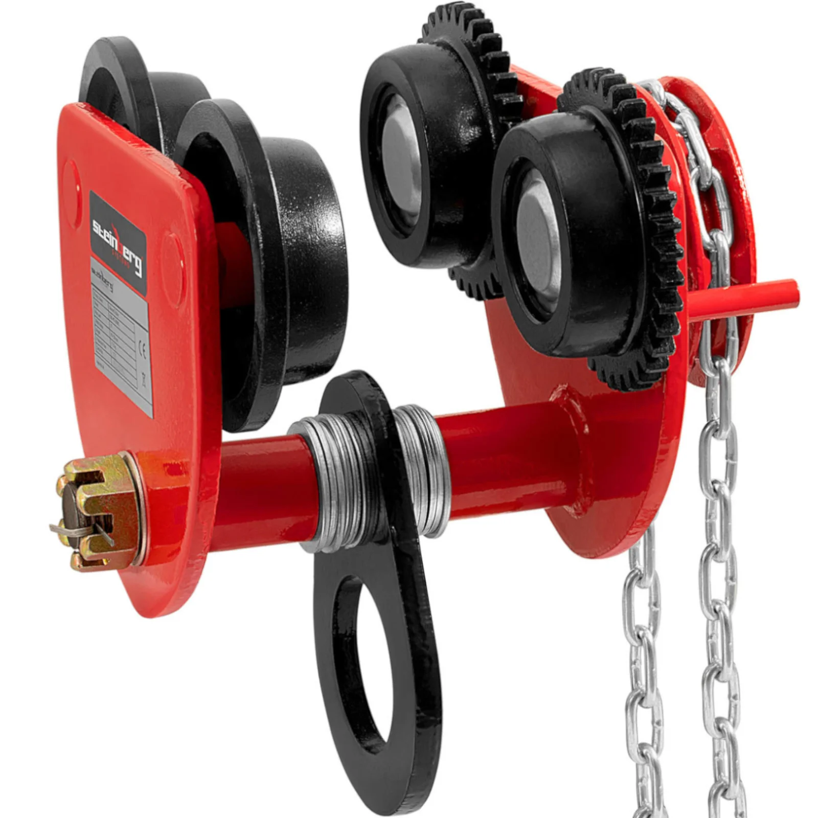 Wózek suwnicowy marki Steinberg to solidne rozwiązanie do przenoszenia ciężkich ładunków. Jego maksymalna nośność wynosi 3000 kg, co czyni go idealnym narzędziem w różnych zastosowaniach. Wykonanie z wysokiej jakości stali węglowej zapewnia trwałość oraz odporność na korozję, a współczynnik bezpieczeństwa 1,25x gwarantuje bezpieczną i płynną pracę.