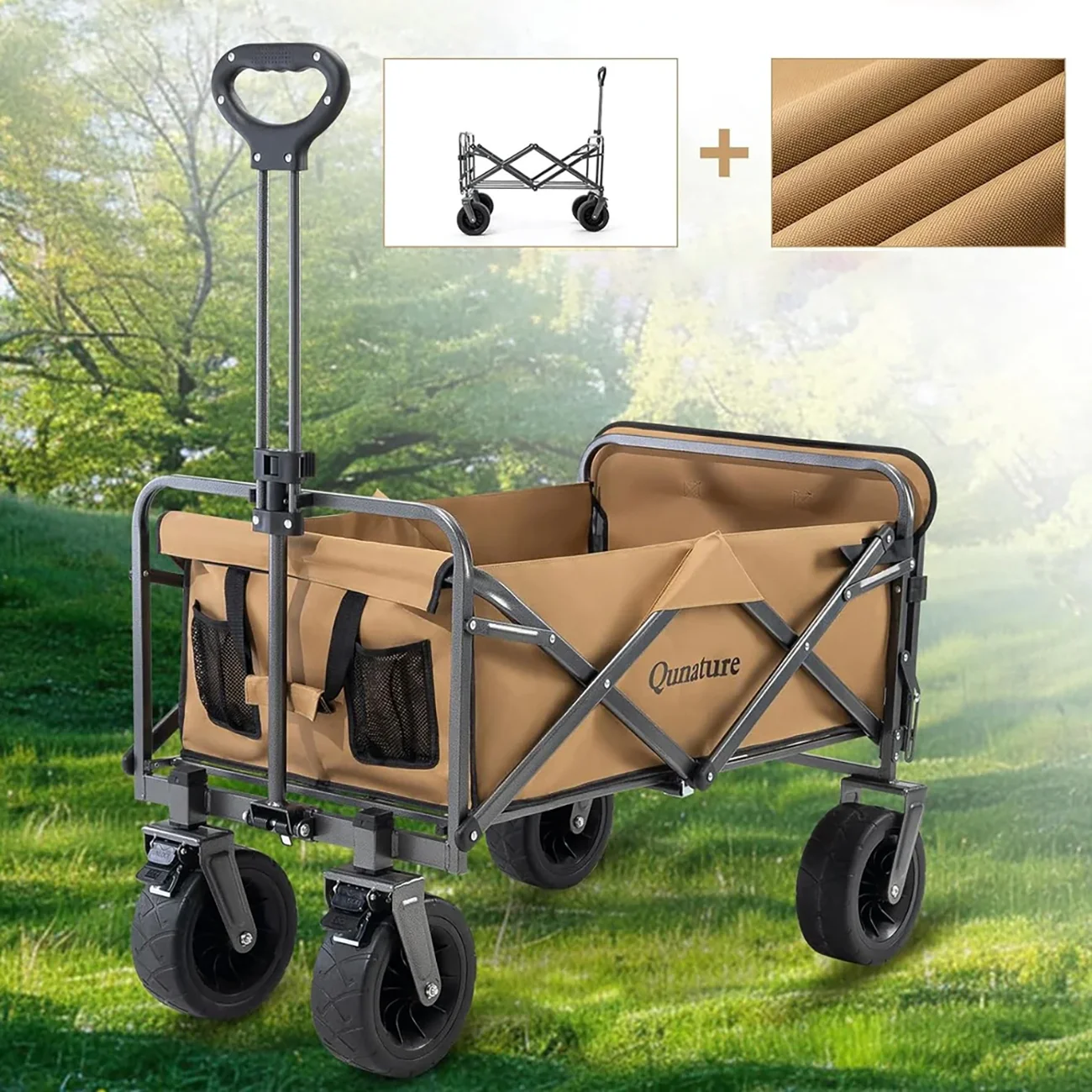 Wózek turystyczny składany ogrodowy w kolorze brązowym to doskonałe rozwiązanie dla osób, które cenią sobie wygodę i praktyczność podczas aktywności na świeżym powietrzu. Idealnie sprawdzi się podczas kempingów, wizyt na plaży, w ogrodzie, a także podczas zakupów.