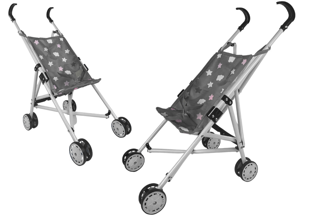 Wózek Dla Lalek Spacerówka Szary w Gwiazdki
