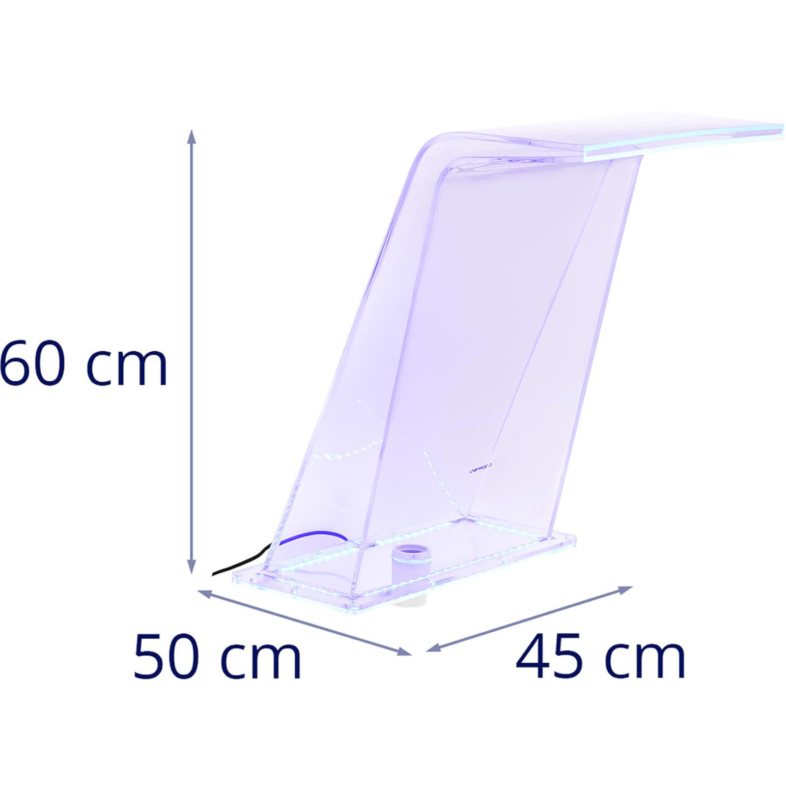 Wylewka wodospadowa to doskonały dodatek do basenów, stawów i ogrodów. Dzięki długości 45 cm oraz szerokości 395 mm, zapewnia równomierny przepływ wody, co tworzy efektowny widok. Oświetlenie LED w kolorze niebieskim i białym nadaje przestrzeni wyjątkowego charakteru.
