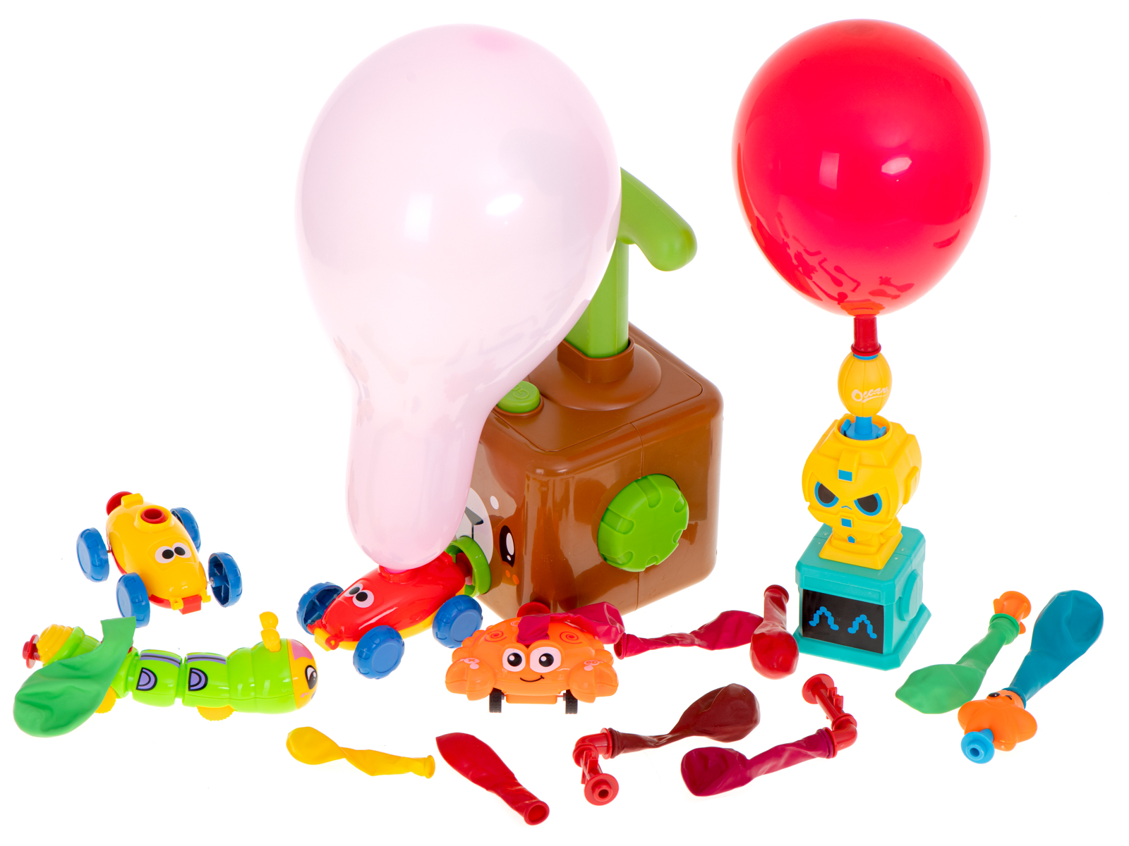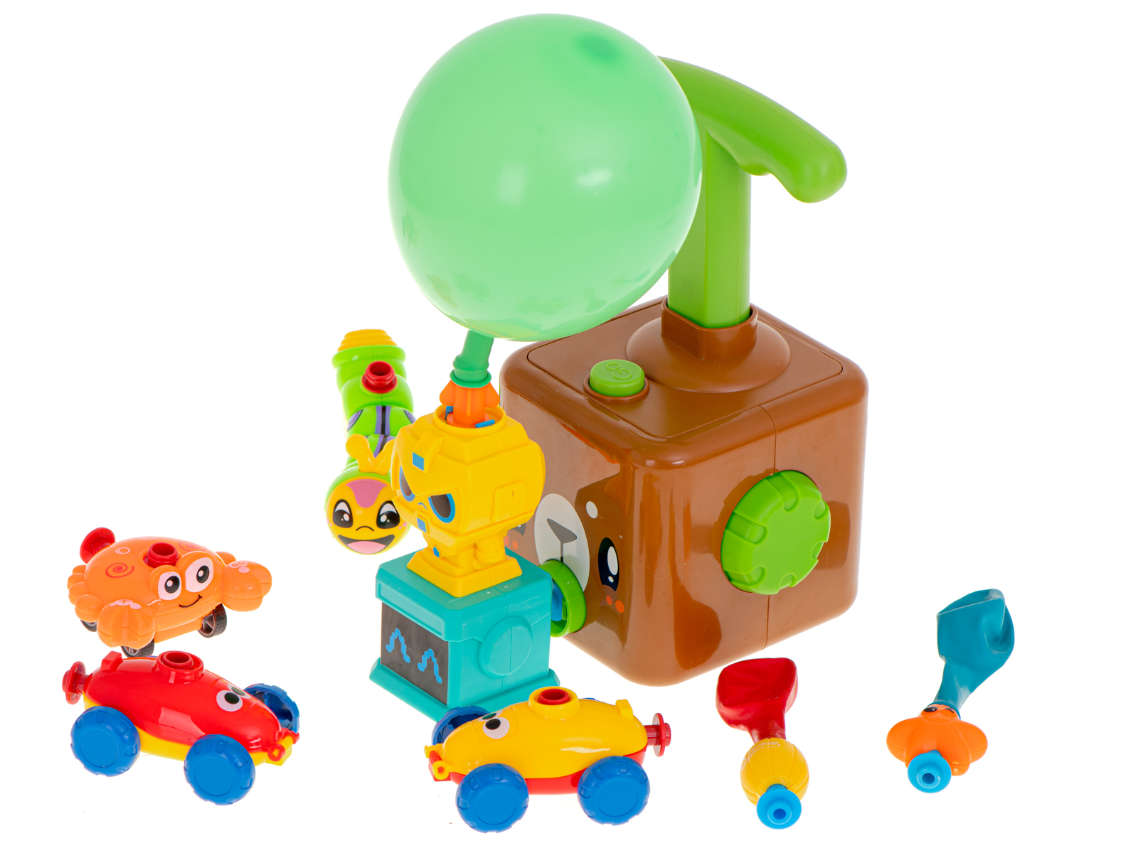Odkryj fantastyczny zestaw samochodów napędzanych powietrzem za pomocą balonów. To idealna zabawka dla młodych odkrywców. Zabawa polega na założeniu balonika na samochód, podłączeniu do wyrzutni, napompowaniu balonika, a następnie obserwowaniu, jak szybko samochód przemieszcza się po dywanie.