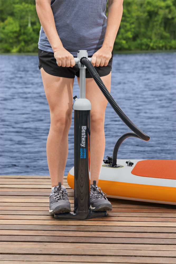 Wysokociśnieniowa pompka ręczna z manometrem Bestway pozwoli bez problemu napompować materace dmuchane, łóżka dmuchane, koła do pływania, pontony, deski SUP, piłki i inne, posiada aluminiowy tłok. Uchwyty z antypoślizgowym wykończeniem. Manometr z czytelnym wyświetlaczem. Do zestawu dołączono 5 różnych adapterów.
