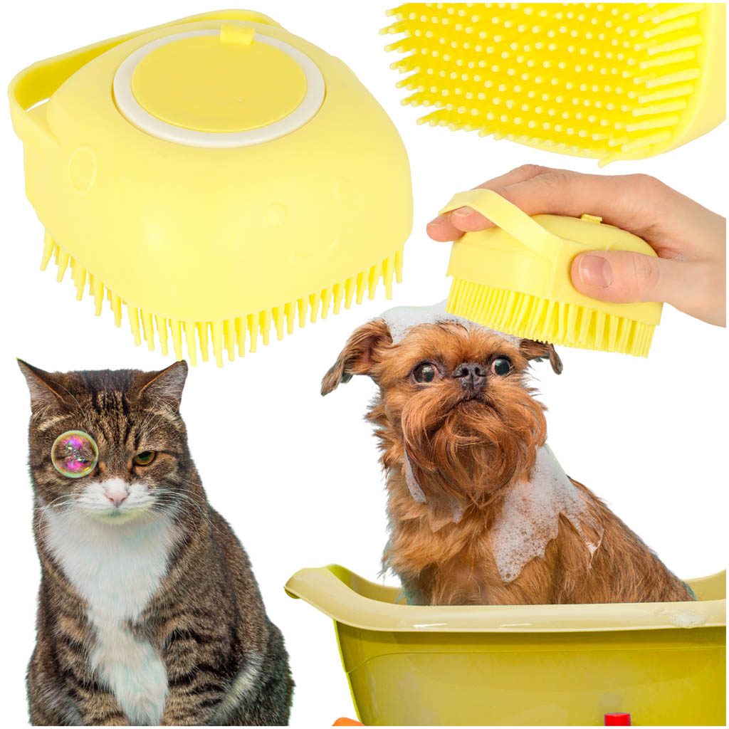 Szczotka silikonowa czyścik myjka do mycia psów kotów z dozownikiem żółta
