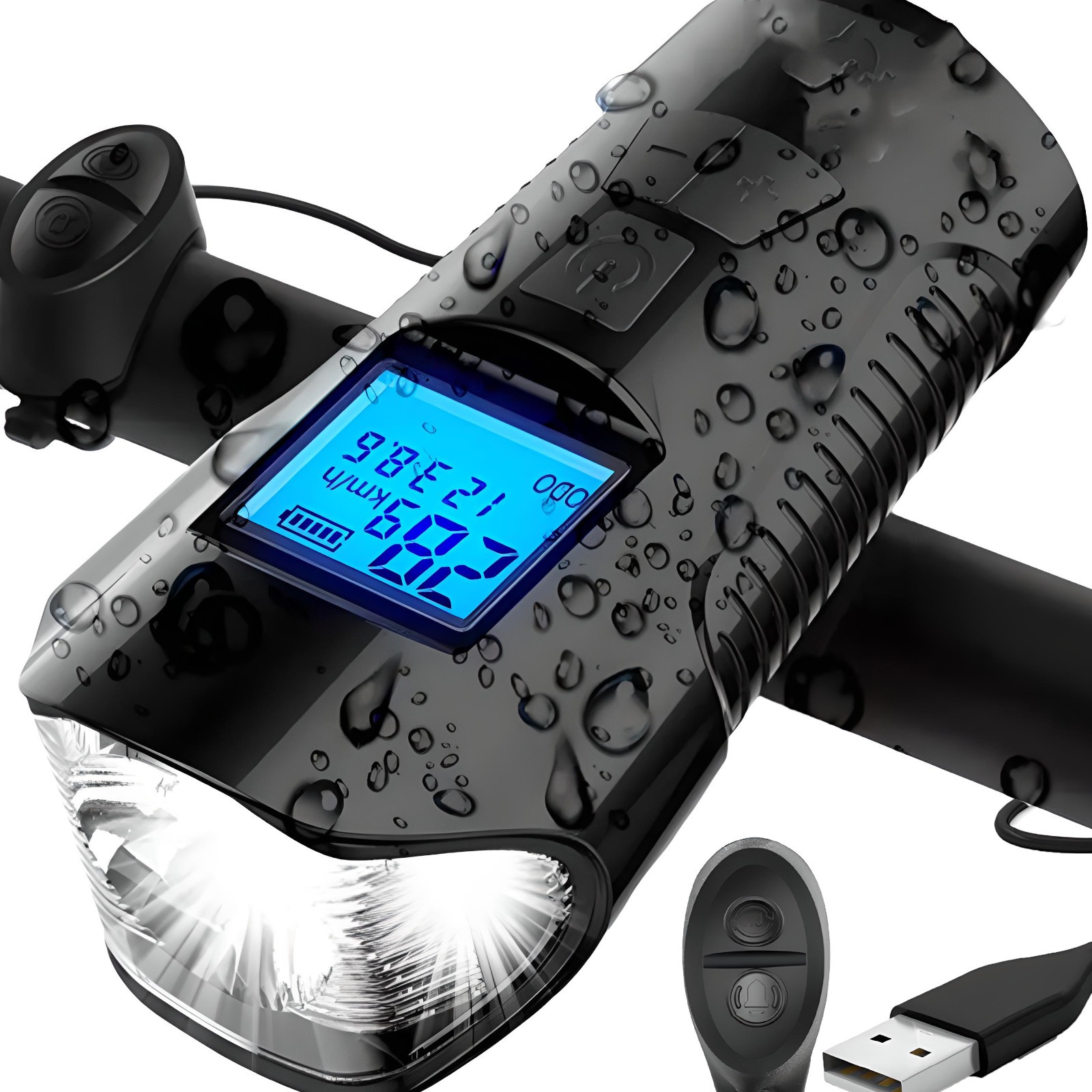 Lampka rowerowa akumulatorowa 5w1 z licznikiem dzwonkiem 1500 mAh
