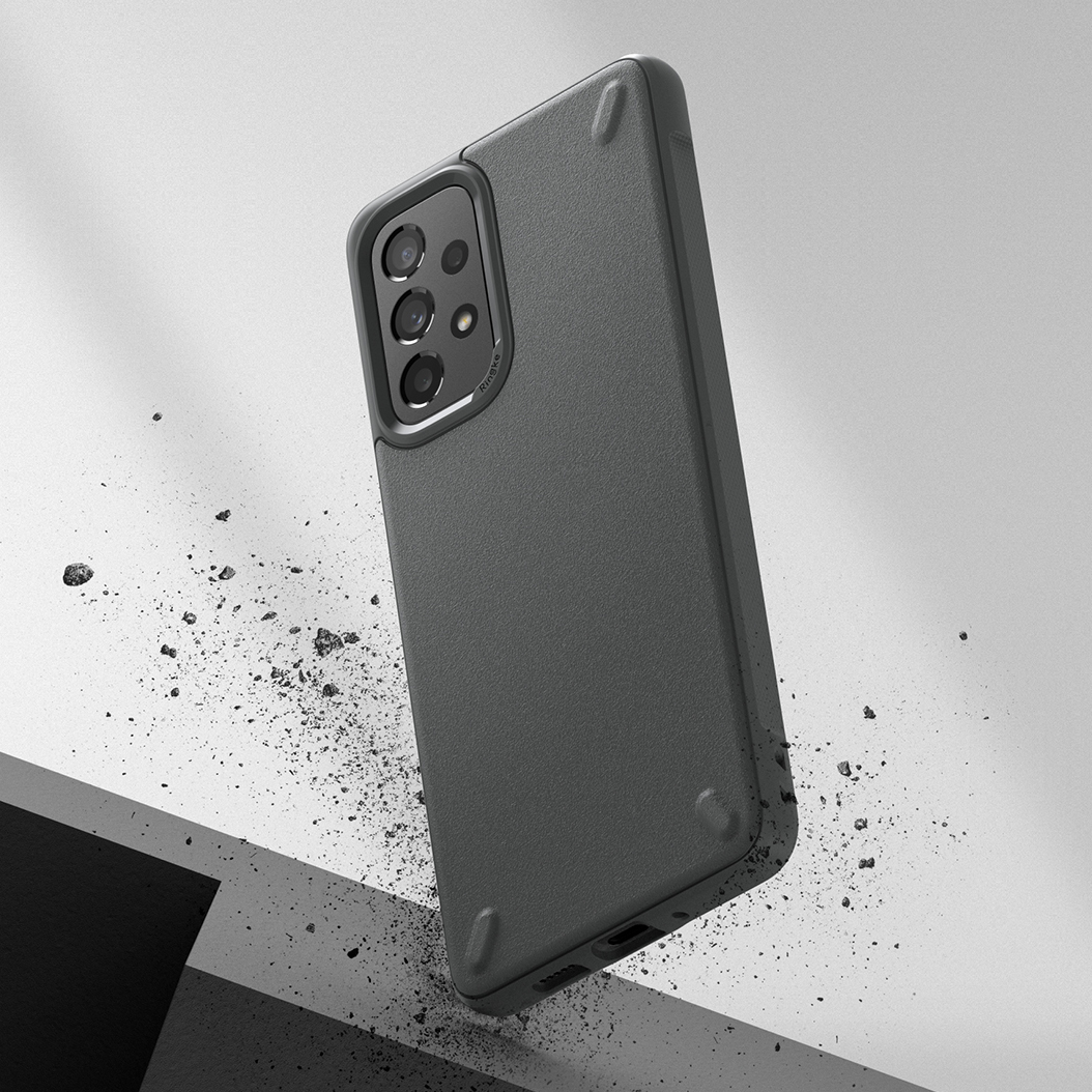 W zestawie znajduje się wytrzymałe i elastyczne etui pokrowiec Galaxy A73 Onyx w kolorze szarym.