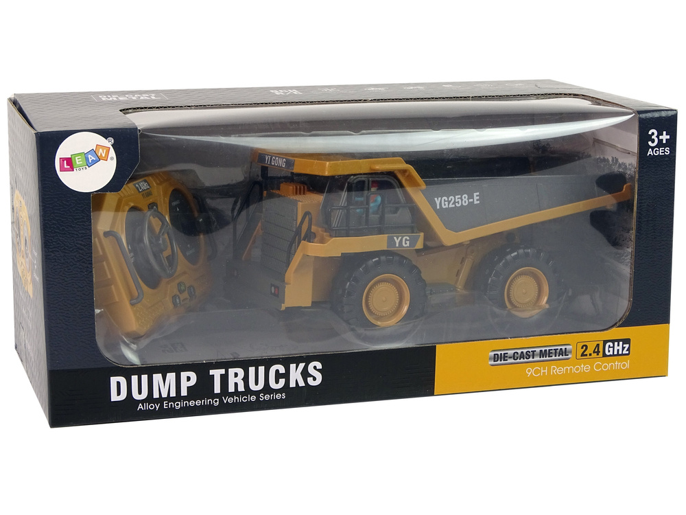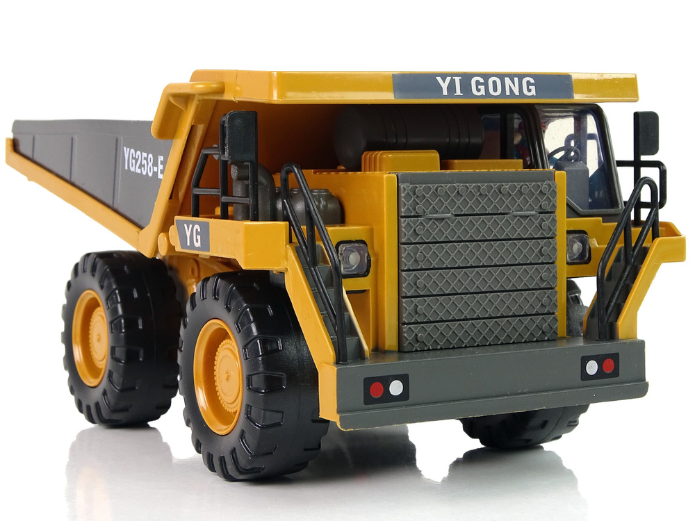 Zdalnie sterowany pojazd budowlany to realistycznie odwzorowany model. Żółta wywrotka ozdobiona jest czarnymi detalami, a także charakterystycznymi naklejkami. Pilot ma częstotliwość 2.4 Ghz. Obsługa pilota R/C jest bardzo prosta, dwa joystiki pozwolą na wygodne manewrowanie. Z jego pomocą operator ciężarówki może kierować nią, zmieniając kierunki jazdy na przód/tył i prawo/lewo, regulować głośność i przede wszystkim poruszać wywrotką.