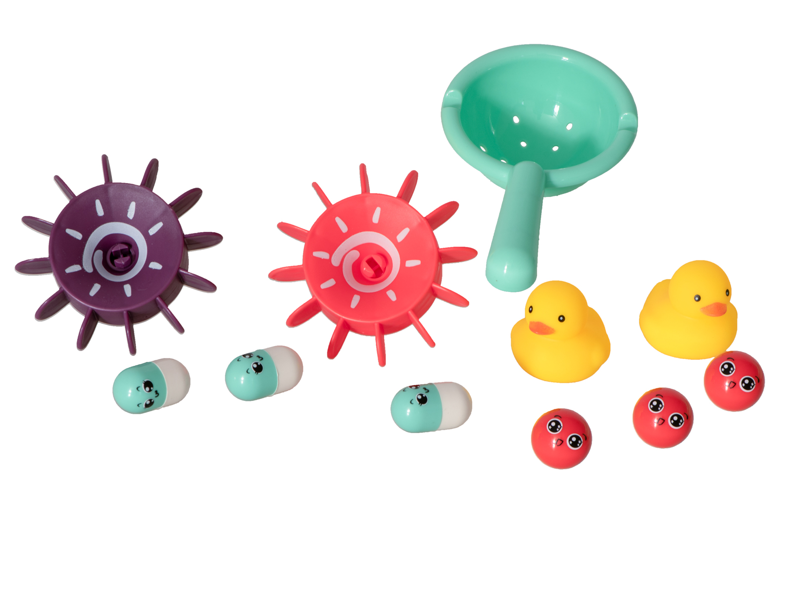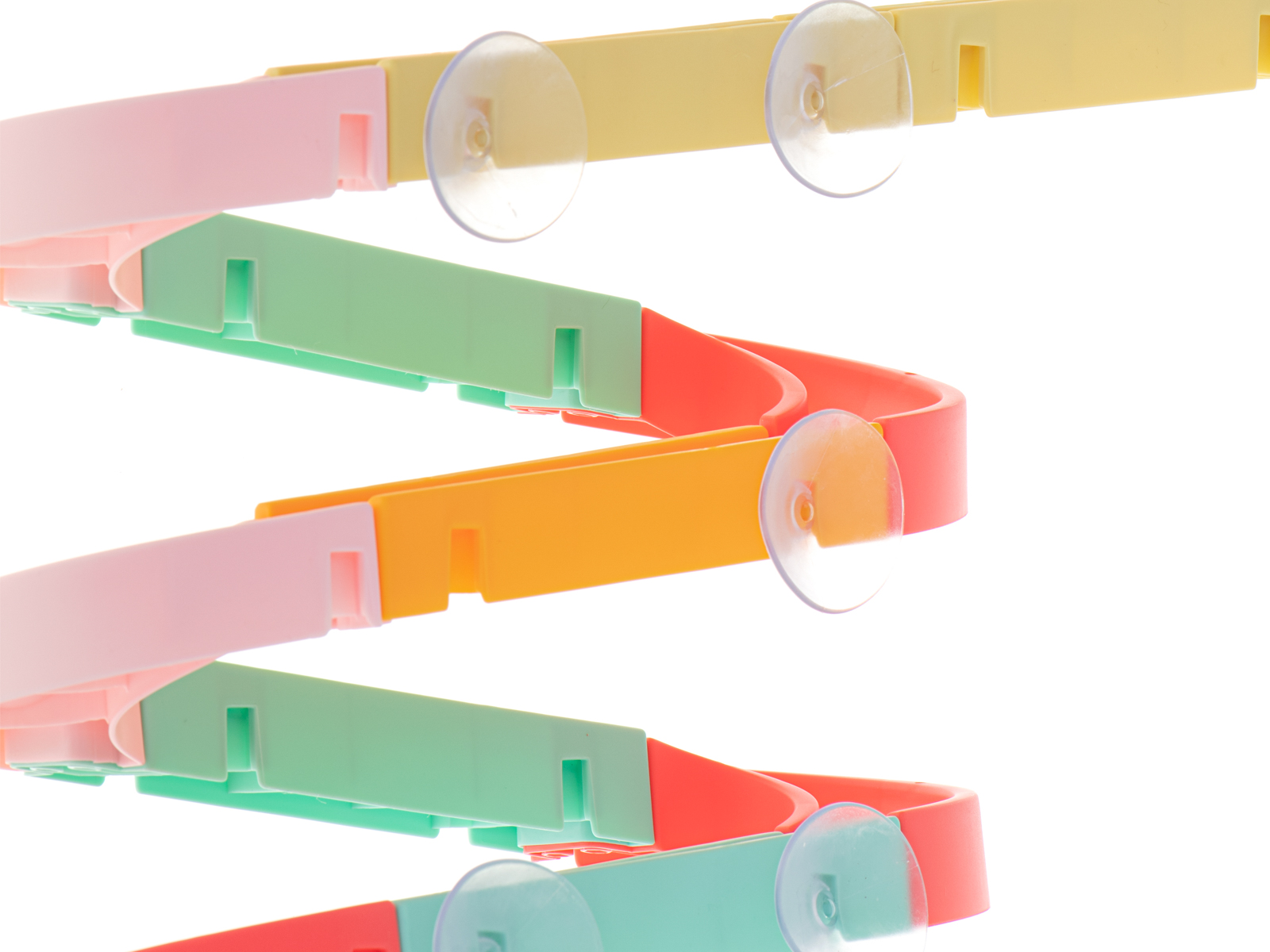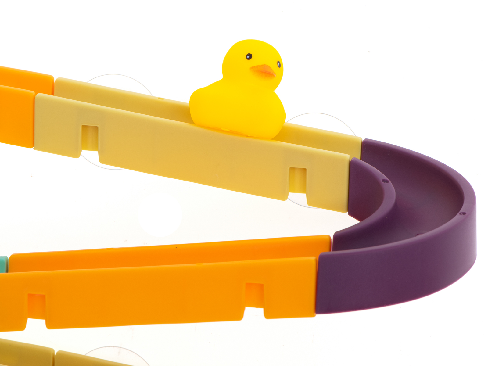 Przyssawki umożliwiają łatwe przymocowanie toru do glazury lub wanny, co zapewnia stabilność podczas zabawy. Z tym zestawem zabawa nigdy się nie kończy! Możesz wymyślać różne kombinacje i tworzyć unikalne tory przeszkód, wykorzystując swoją wyobraźnię.