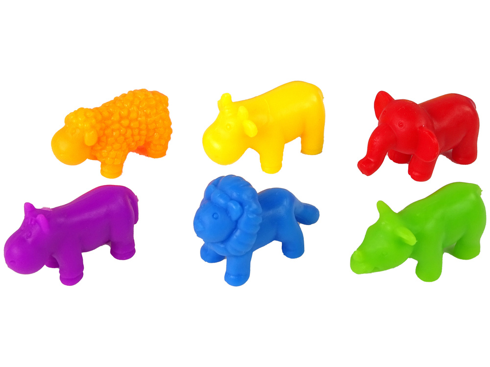 Twoje dziecko, dzięki zabawce nie tylko nauczy się liczenia, dodawania, ale i rozróżniania kolorów i kształtów. Wszystkie figurki wykonane są z twardej gumy, małe i poręczne.