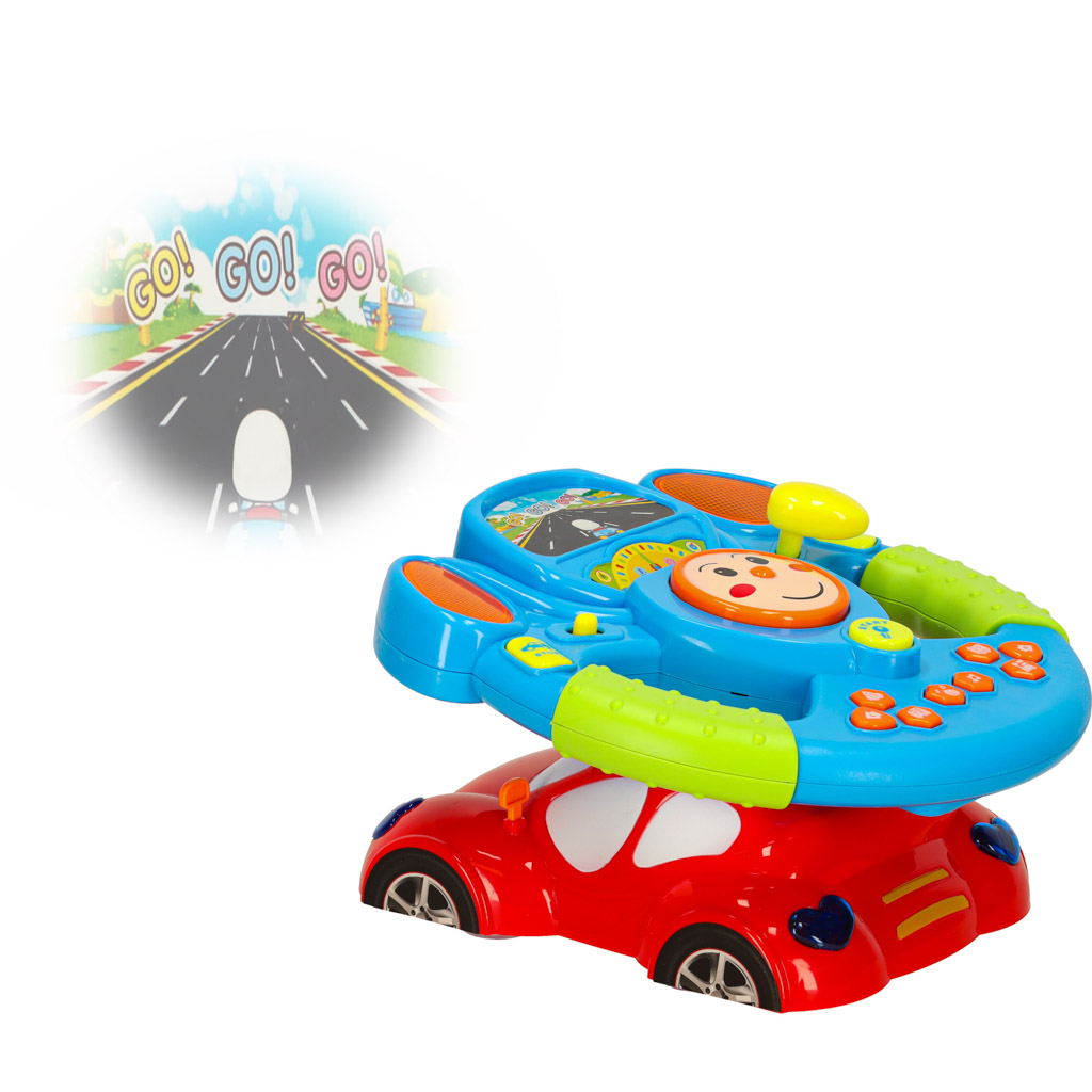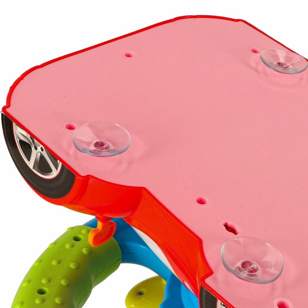 Wbudowany rzutnik wyświetla obraz drogi, co pozwala dzieciom poczuć się, jakby prowadziły auto. To funkcja, która stymuluje wyobraźnię i angażuje w kreatywną zabawę. Kierownica jest zamocowana na czerwonym aucie z przyssawką, co zapewnia stabilność na różnych powierzchniach. Idealna do zabawy w domu oraz w podróży.