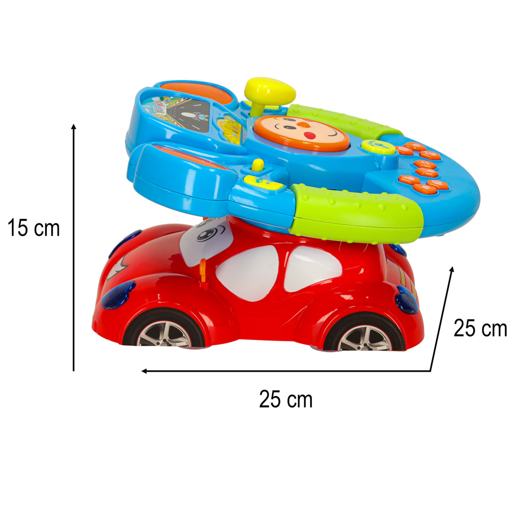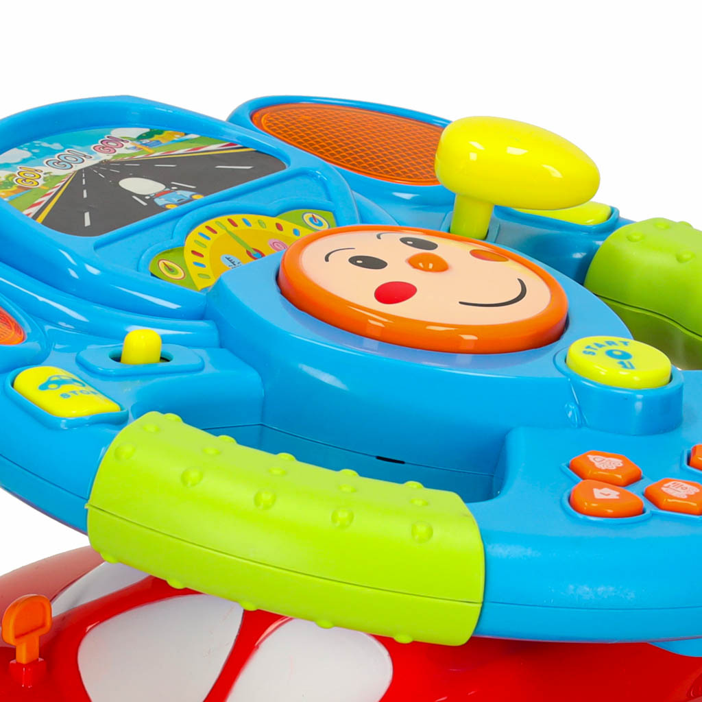 Oferuje efekty świetlne i dźwiękowe, które wzbogacają zabawę, jednocześnie wspierając rozwój percepcji słuchowej i wzrokowej. Kierownica została zaprojektowana z myślą o bezpieczeństwie, wykonana jest z trwałego plastiku, co czyni ją odpowiednią dla dzieci od 18. miesiąca życia.