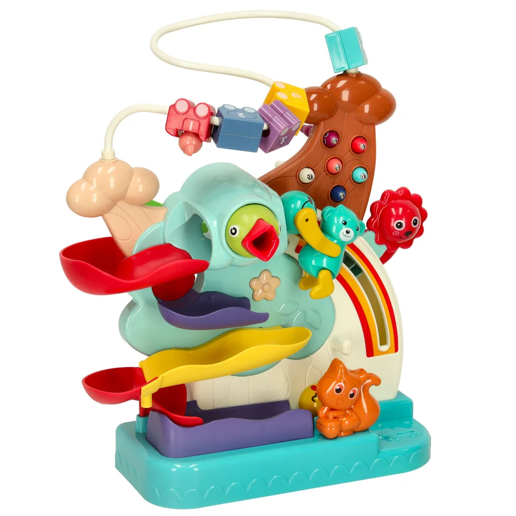 Odkryj radość z zabawy dzięki interaktywnej zabawce, która wspiera rozwój umiejętności Twojego dziecka. Zabawka oferuje różnorodność atrakcji, w tym dwa tory kulkowe i grę "nakarm ptaszka", zapewniając dzieciom długie godziny kreatywnej zabawy.