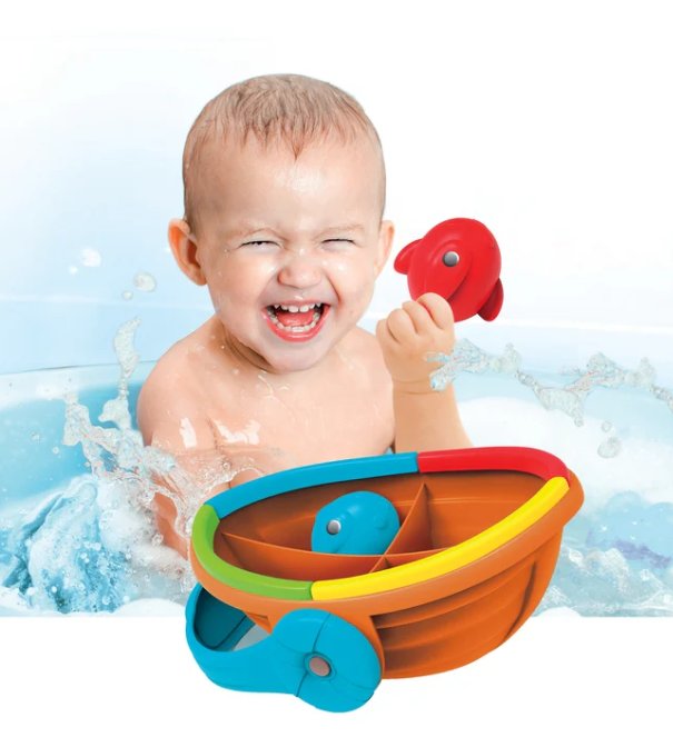 Pojemnik jest równocześnie pływającą łódką, którą dziecko może się bawić podczas kąpieli.