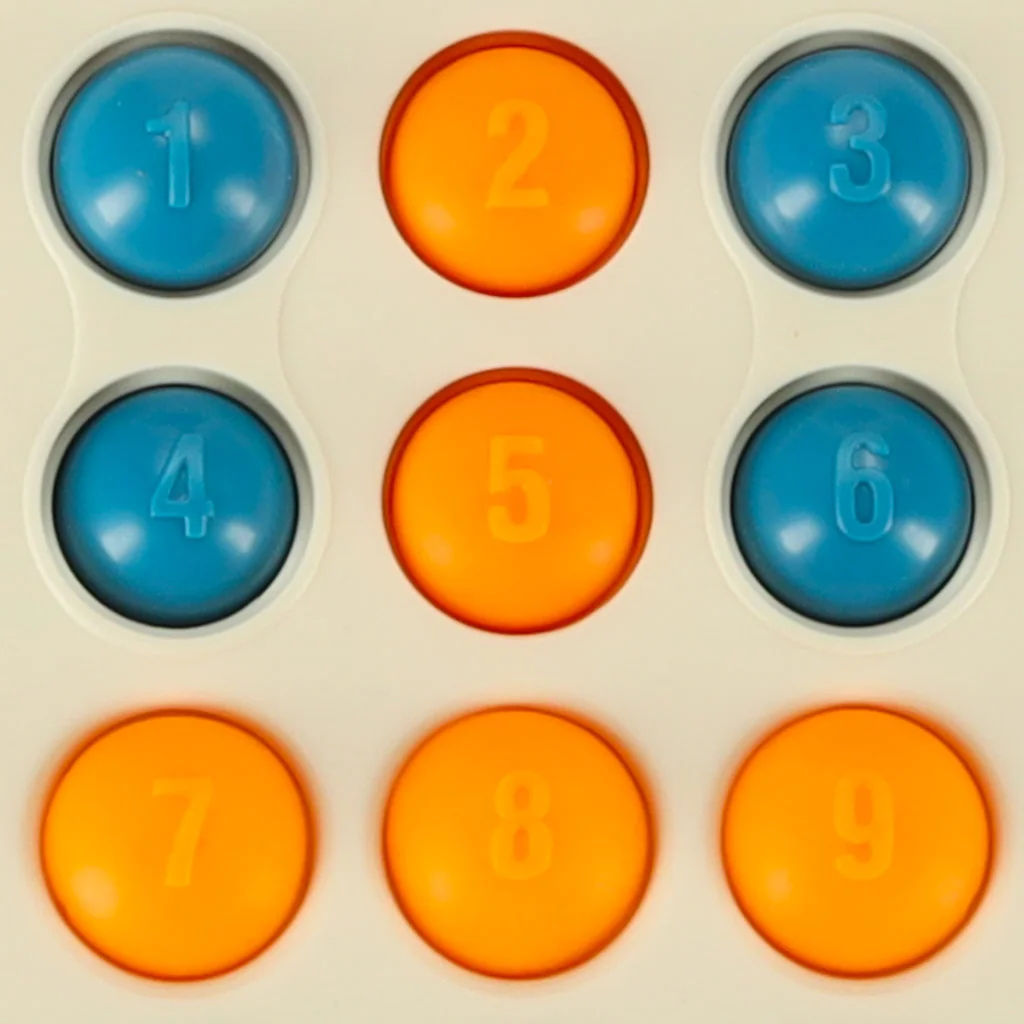 Wyraziste kolory oraz różnorodne faktury pobudzają ciekawość malucha. Labirynt z kulkami stanowi wyzwanie dla małych rączek, a gumowe przyciski z cyferkami umożliwiają naukę liczb w przystępny sposób. Gumowe elementy, takie jak sznurki i uszy, mogą również służyć jako gryzaki. Dzięki bezpiecznym materiałom, zabawka jest idealna dla każdego małego odkrywcy!