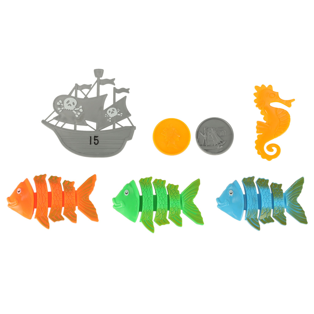 Komplet zabawek do wyławiania w basenie wspiera naukę pływania oraz zajęcia związane z integracją sensoryczną. Rybki w różnych kształtach i kolorach ułatwiają dzieciom oswajanie się z wodą, zachęcając do odkrywania podwodnego świata.