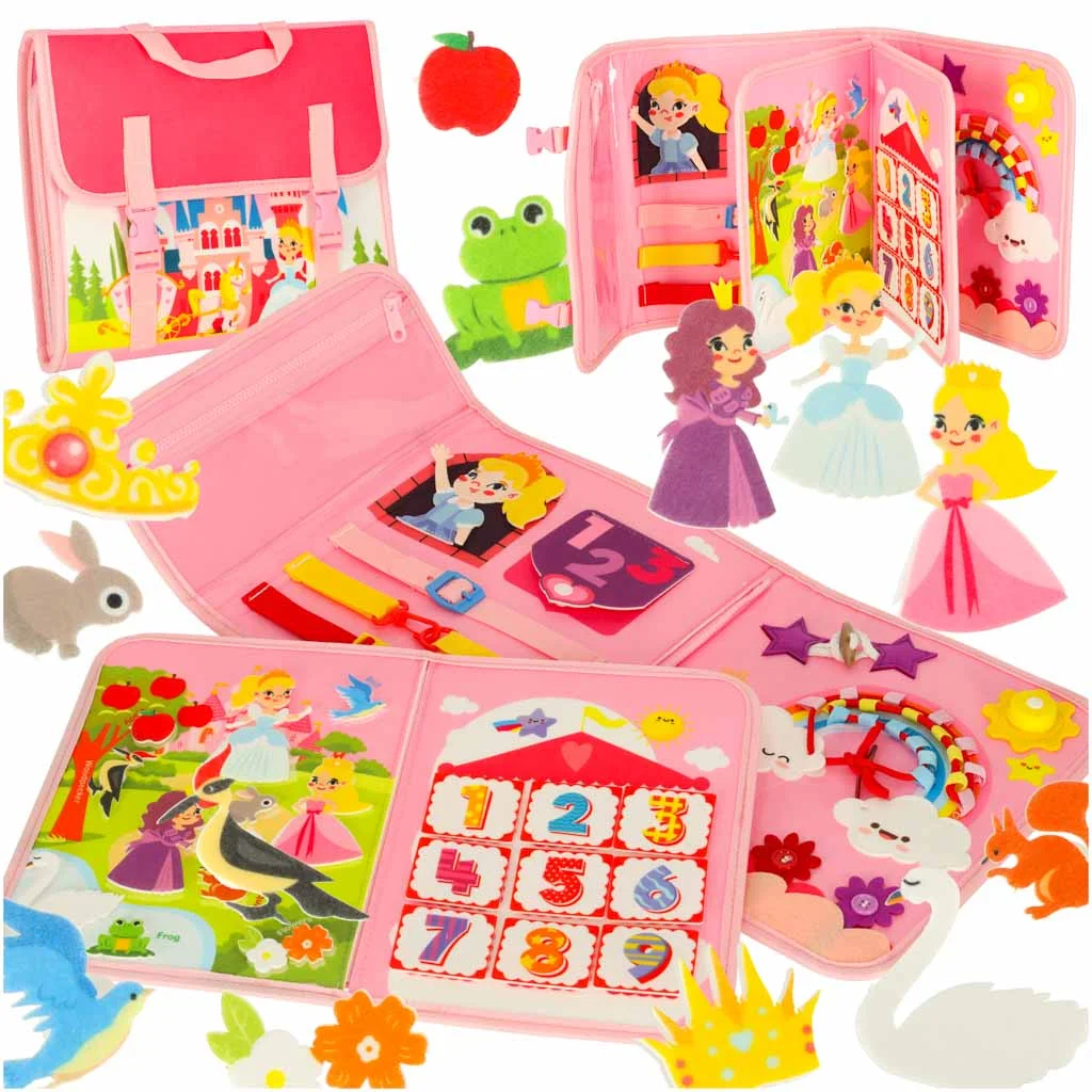 Tablica manipulacyjna sensoryczna montessori walizka plecak różowa