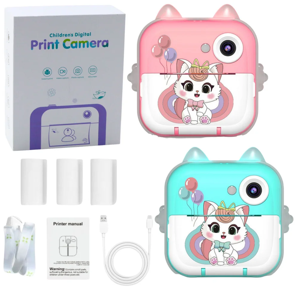 Aparat Natychmiastowy z Drukarką Termiczną Gry 3 Rolki Kotek Różowy