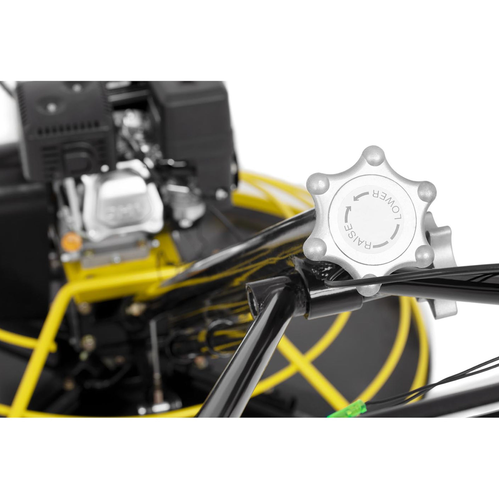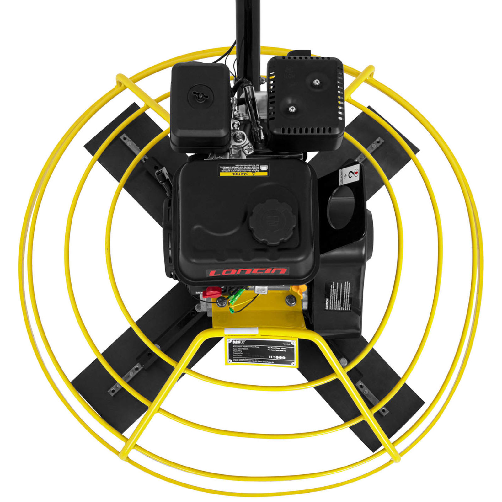 Wyposażona w talerz, zacieraczka eliminuje ślady polerowania, co pozwala uzyskać gładką i estetyczną powierzchnię. Dodatkowe bezpieczeństwo zapewnia dźwignia odcinająca zapłon oraz klatka chroniąca łopaty, co zwiększa stabilność i redukuje wibracje. Regulowane uchwyty podnoszą komfort użytkowania, a zamknięta obudowa paska poprawia mobilność urządzenia.