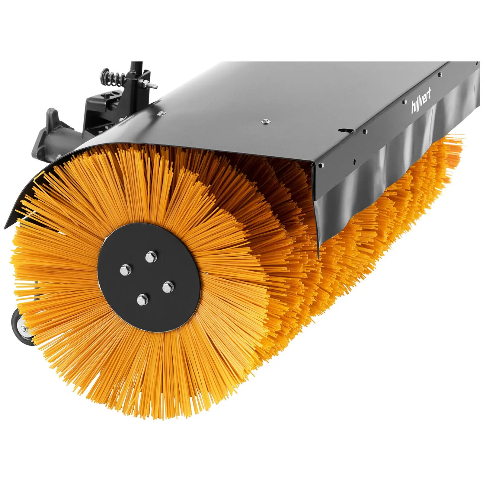Dodatkowo, wbudowana zakrzywiona płyta ochronna minimalizuje ryzyko podrzucania piasku, brudu i liści, co zwiększa bezpieczeństwo użytkowania. Zamiatarka jest kompatybilna z ciągnikiem HT-WB-900 i innymi podobnymi urządzeniami.